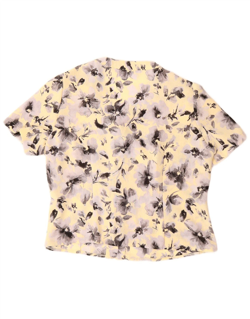- AI Description: This Eastex womens shirt blouse is crafted from lightweight woven polyester. It features a vibrant yellow multicoloured floral abstract pattern. The V-neckline and short sleeves offer a classic, comfortable silhouette. A button-up front secures the regular fit, ensuring timeless style. This piece combines elegance with a fresh, bright aesthetic.