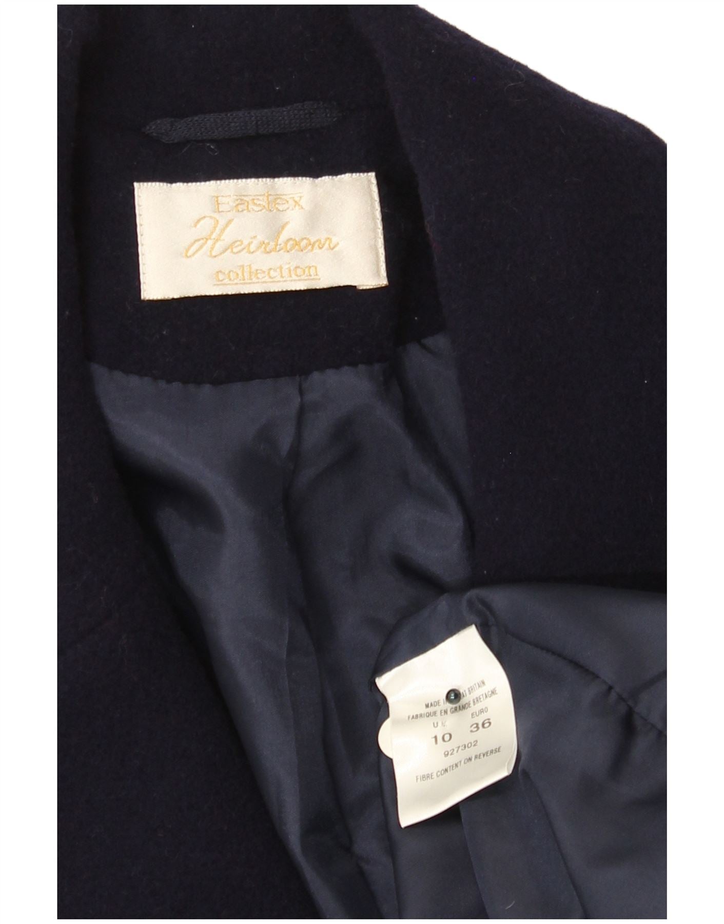 - AI Description: This Heirloom Collectibles womens pea coat is crafted from a rich navy blue woven wool fabric. It features a classic collared neckline and long sleeves. The double breasted front fastens with four prominent buttons. A regular fit ensures comfortable wear. Functional pockets add practicality and a refined finish. This timeless style offers warmth and sophistication.