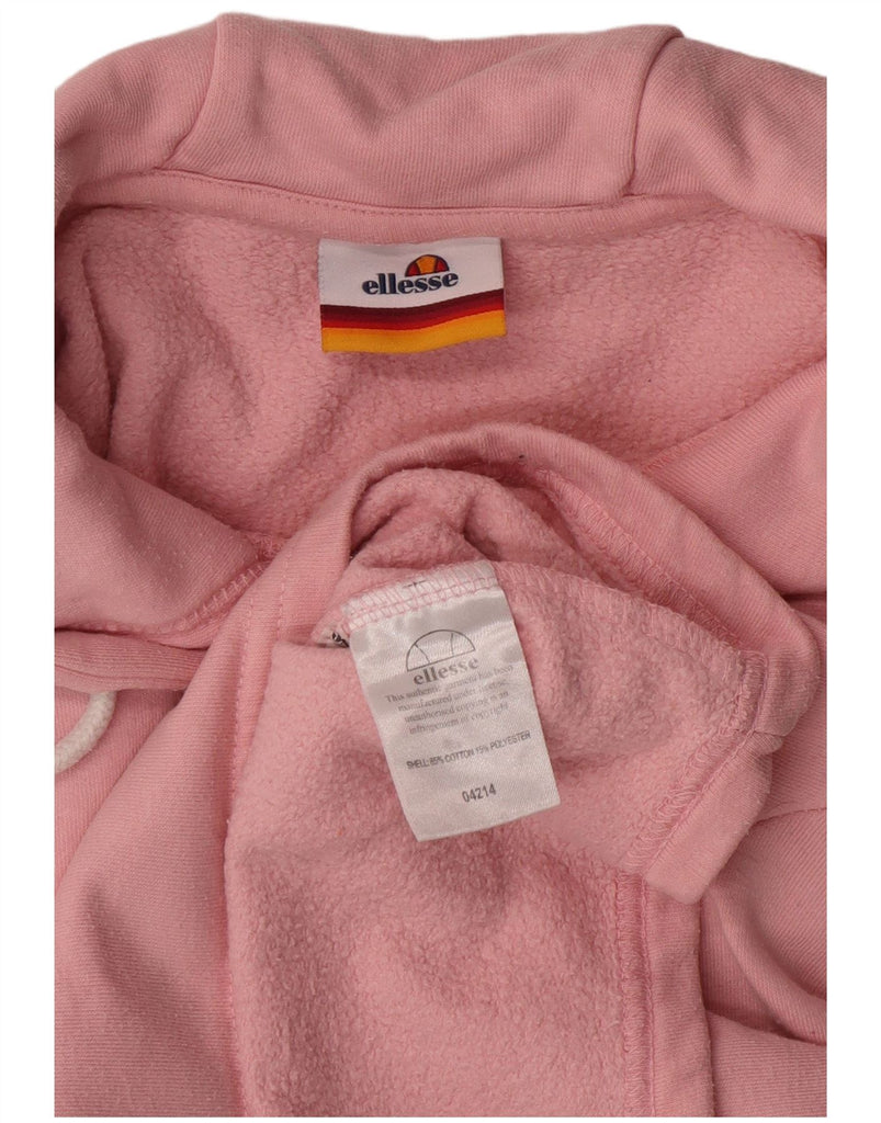 ELLESSE Womens Crop Graphic Hoodie Jumper UK 12 Medium Pink Colourblock