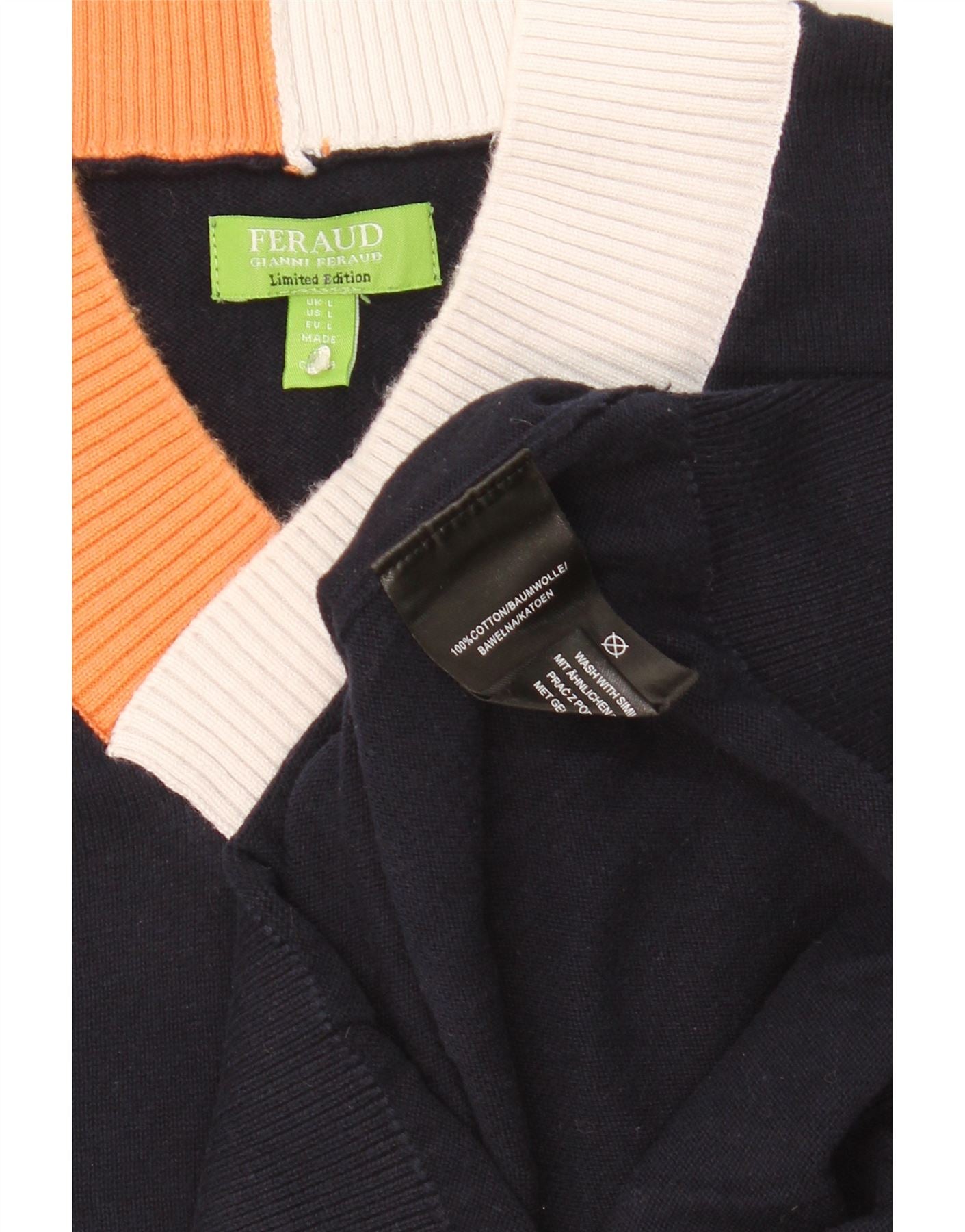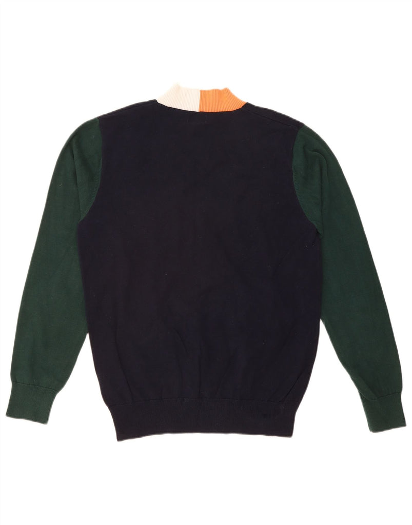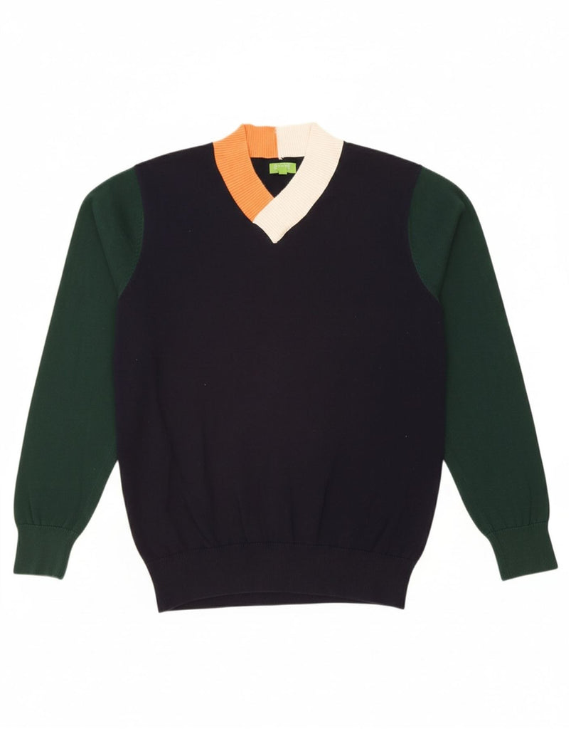 FERAUD Mens V-Neck Jumper Sweater Large Navy Blue Colourblock Cotton