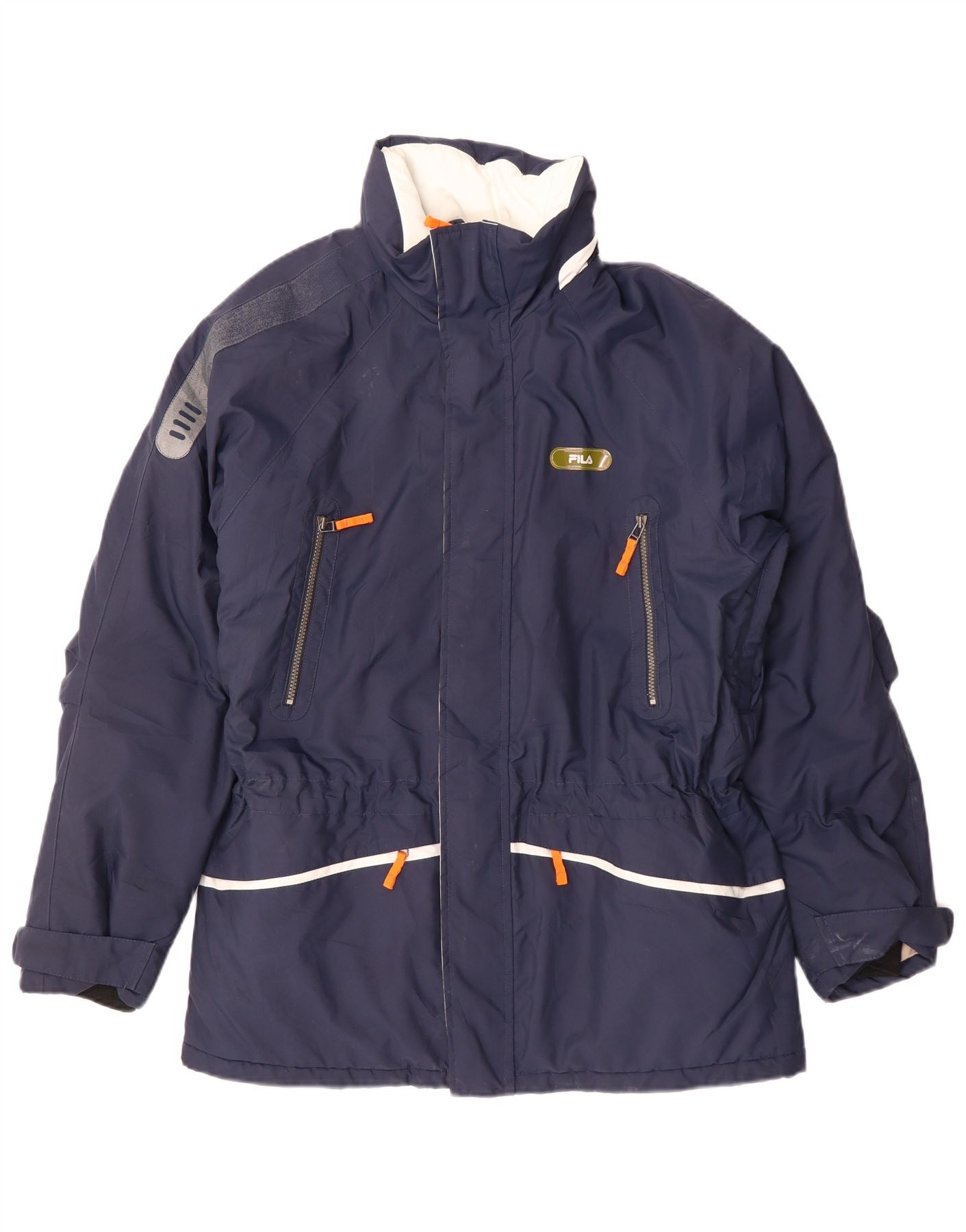- AI opis: Ova Fila muška podstavljena jakna izrađena je od izdržljive tamnoplave tkanine. Nudi vodootpornu zaštitu i zaštitu od vjetra, idealnu za aktivnosti na otvorenom. Visoki ovratnik i dugi rukavi pružaju izvrsnu pokrivenost. Potpuni patentni zatvarač osigurava prednju stranu, dopunjen s više praktičnih džepova. Jarko narančasti patentni zatvarači dodaju prepoznatljiv vizualni detalj. Njegova podstavljena konstrukcija osigurava toplinu, dok uobičajeno pristajanje omogućuje udobno slojevitost.