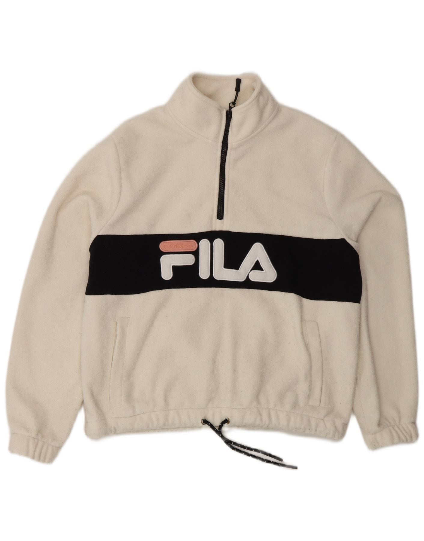 FILA Ženski prekomjerni grafički džemper od flisa UK 10 Mali bijeli blok u boji