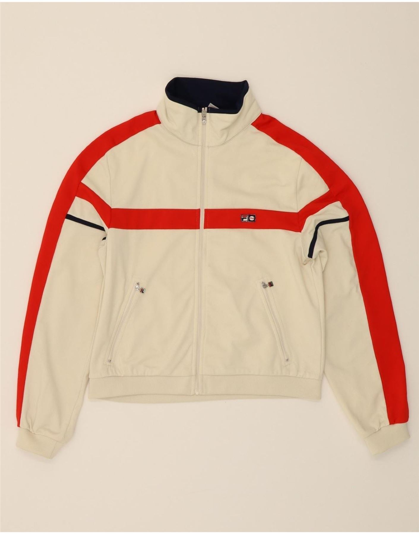 FILA Womens Tracksuit Top Jacket UK 14 Medium White Colourblock Polyester