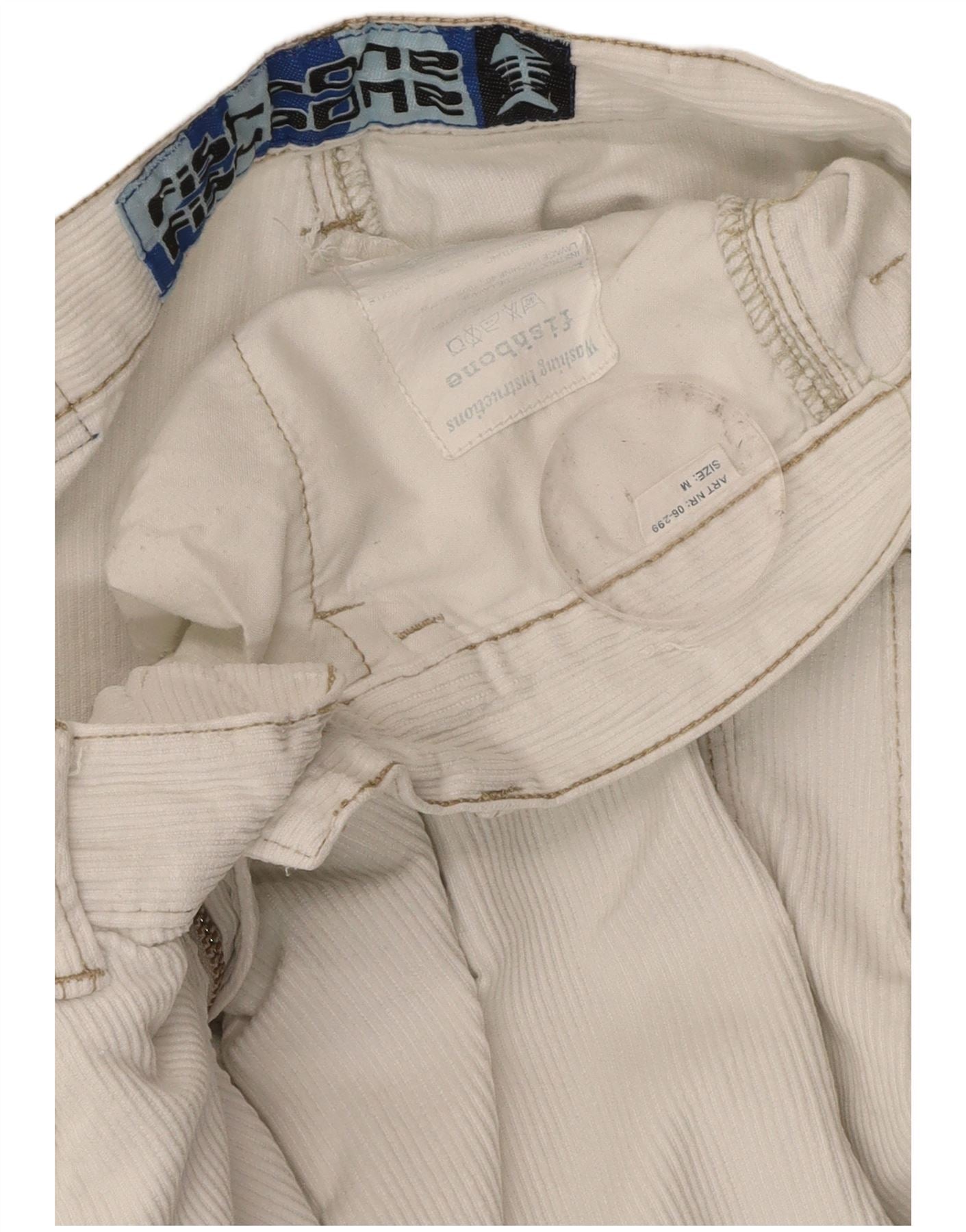 - AI Description: This Fishbone mens Cargo Trousers are crafted from soft off white corduroy, offering a distinctive texture. They feature a relaxed, wide leg fit for ultimate comfort. The button closure ensures a secure fastening. Practical pockets add functionality and a classic cargo aesthetic. The design prioritises ease of movement and a laid-back style.