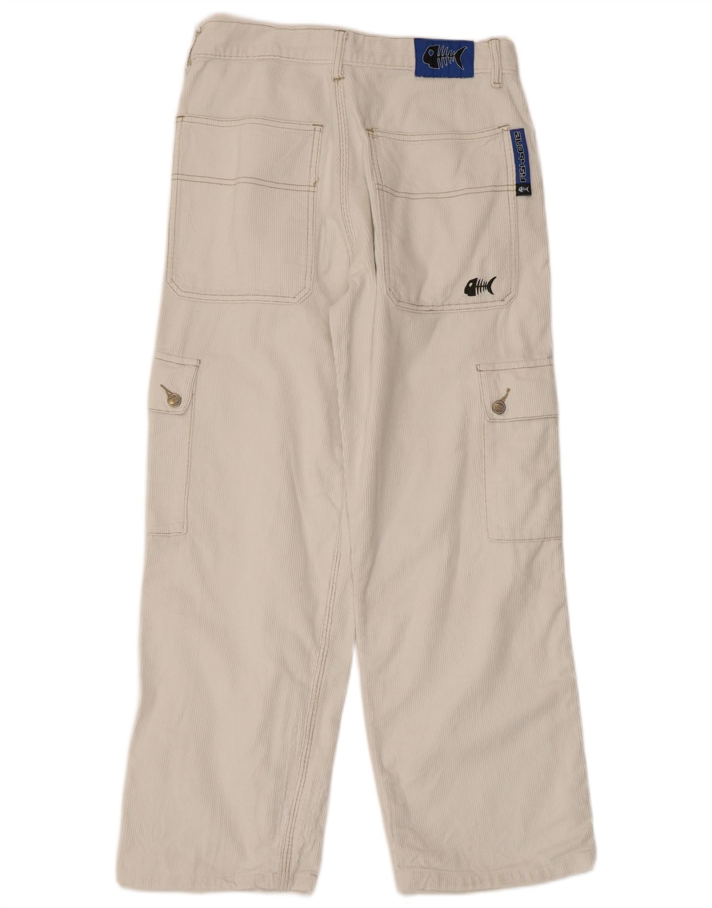 FISHBONE Mens Straight Cargo Corduroy Trousers Medium W30 L28 White Cotton
