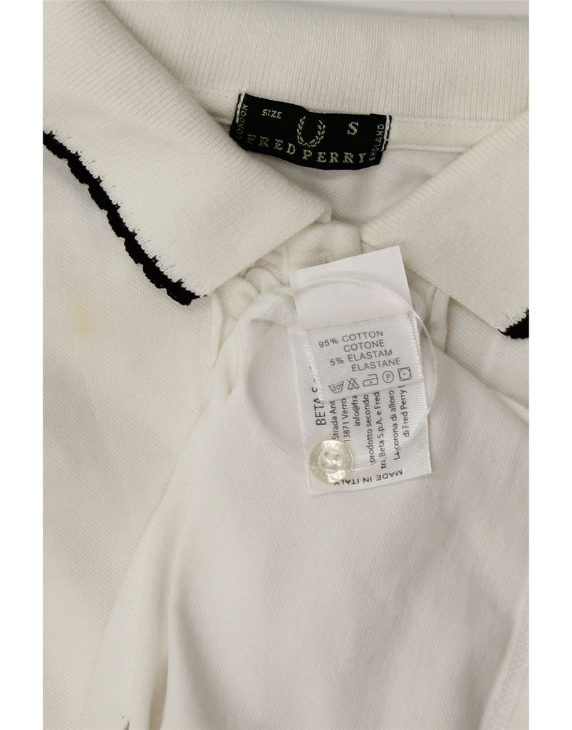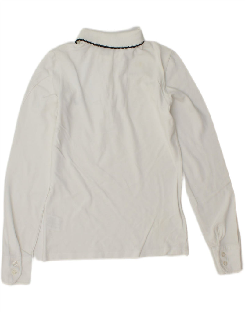 FRED PERRY Womens Long Sleeve Polo Shirt UK 10 Small White Cotton