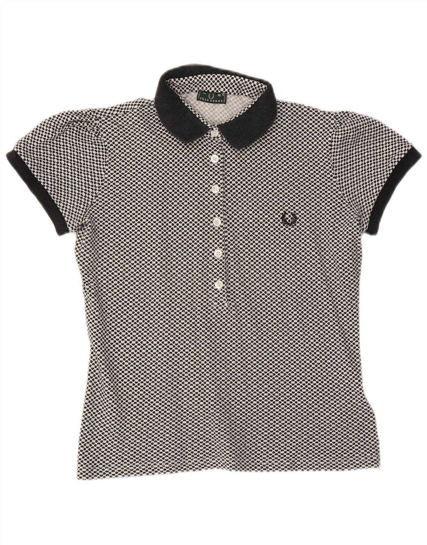 FRED PERRY Ženska polo majica UK 12 Srednje tamnoplavi cvjetni pamuk
