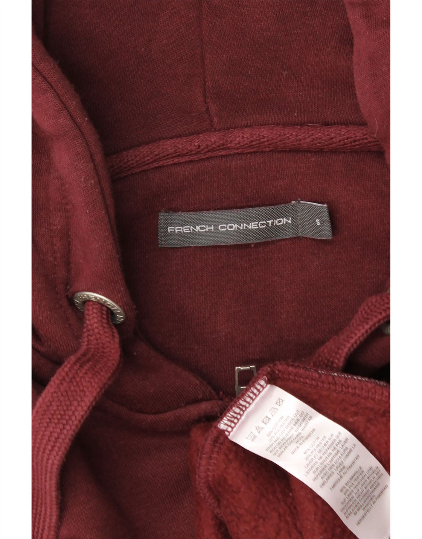 FRENCH CONNECTION Muški pulover s kapuljačom s patentnim zatvaračem, mali bordo pamuk