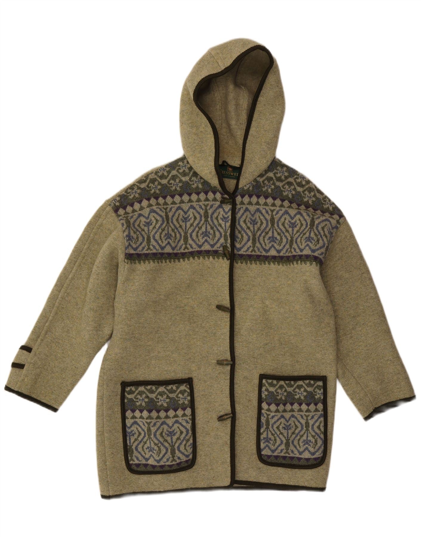 GIESSWEIN ženski džemper s kapuljačom UK 14 Large Green Fair Isle