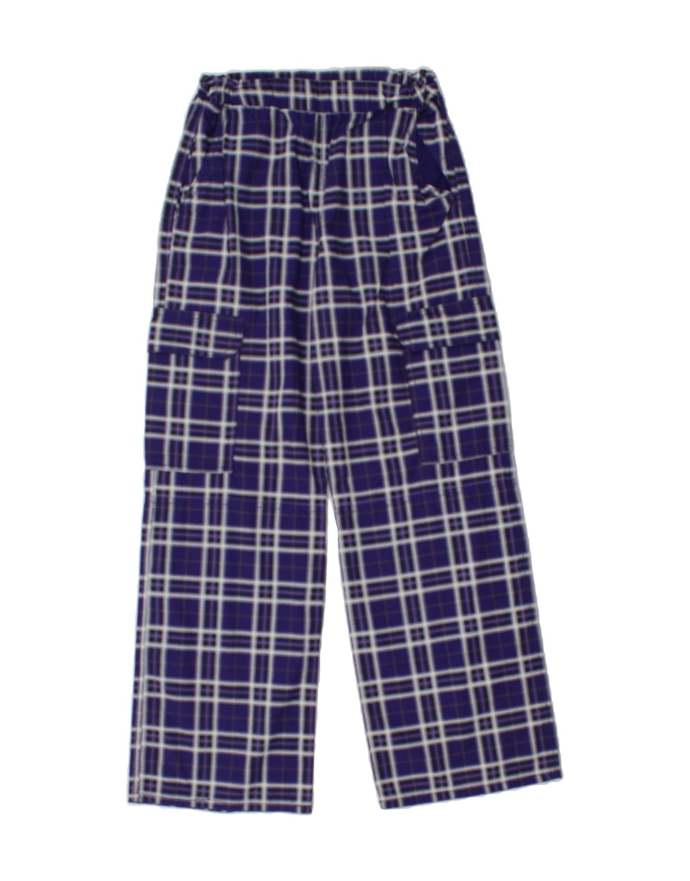 H&M Boys Straight Cargo Trousers 12-13 Years W28 L27 Blue Check
