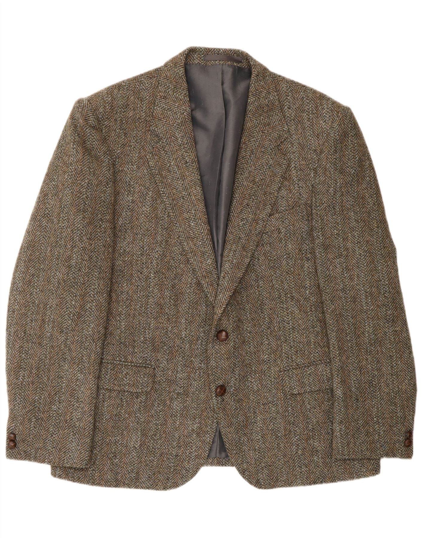 HARRIS TWEED Muški sako sa 2 gumba UK 46 3XL Zelena riblja kost vuna
