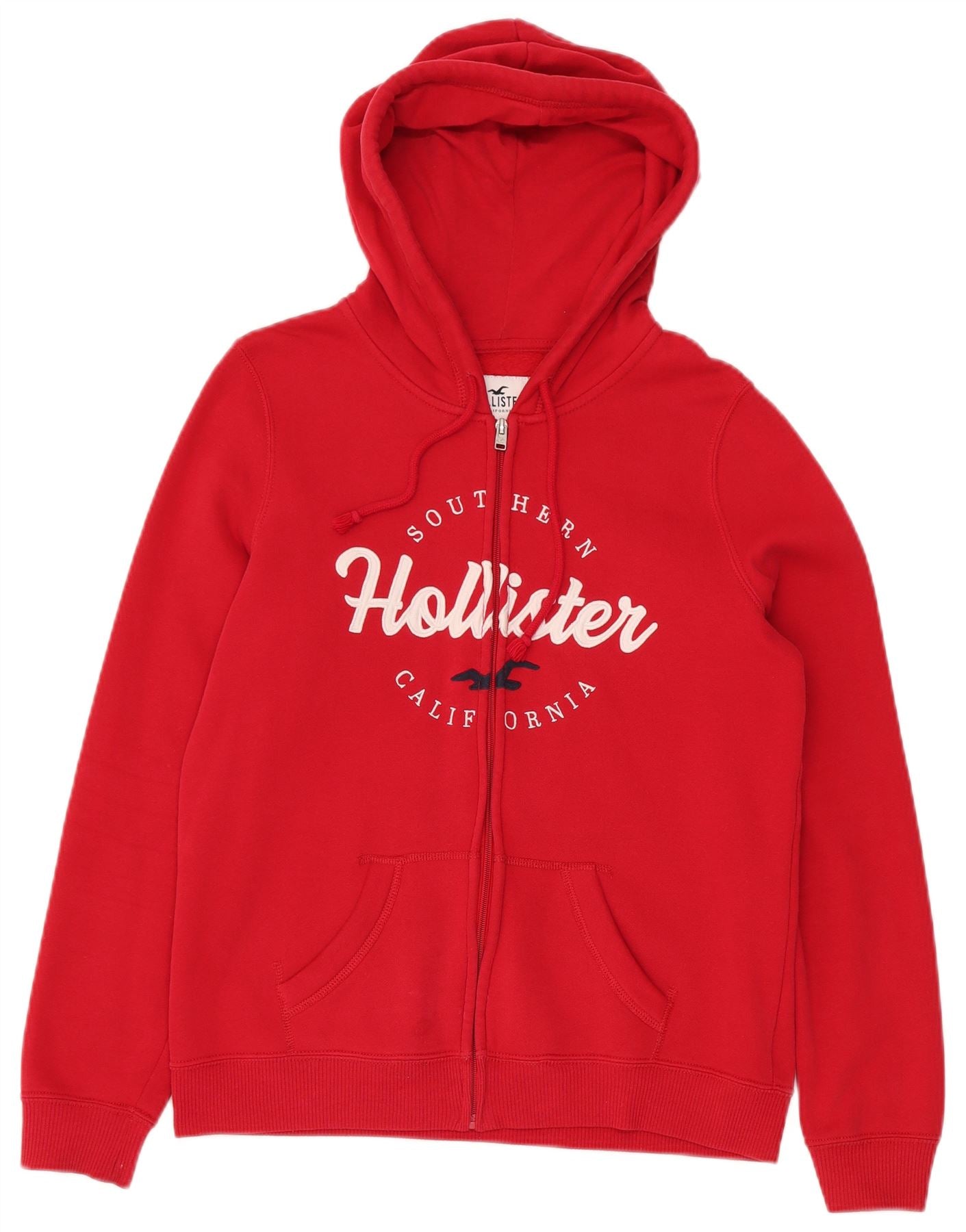 HOLLISTER Ženski pulover s kapuljačom s grafičkim patentnim zatvaračem UK 14 Srednje crveni pamuk