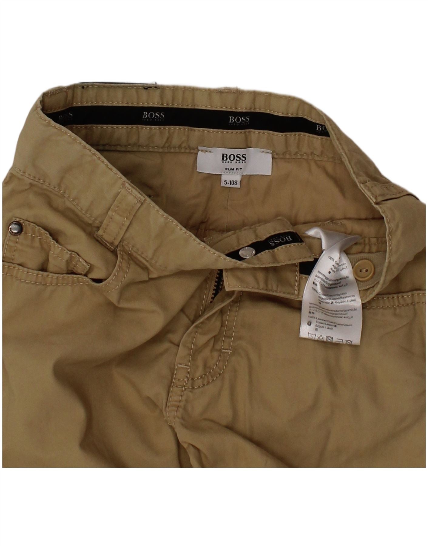 HUGO BOSS Boys Slim Fit Casual Trousers 4-5 Years W20 L19 Beige Cotton