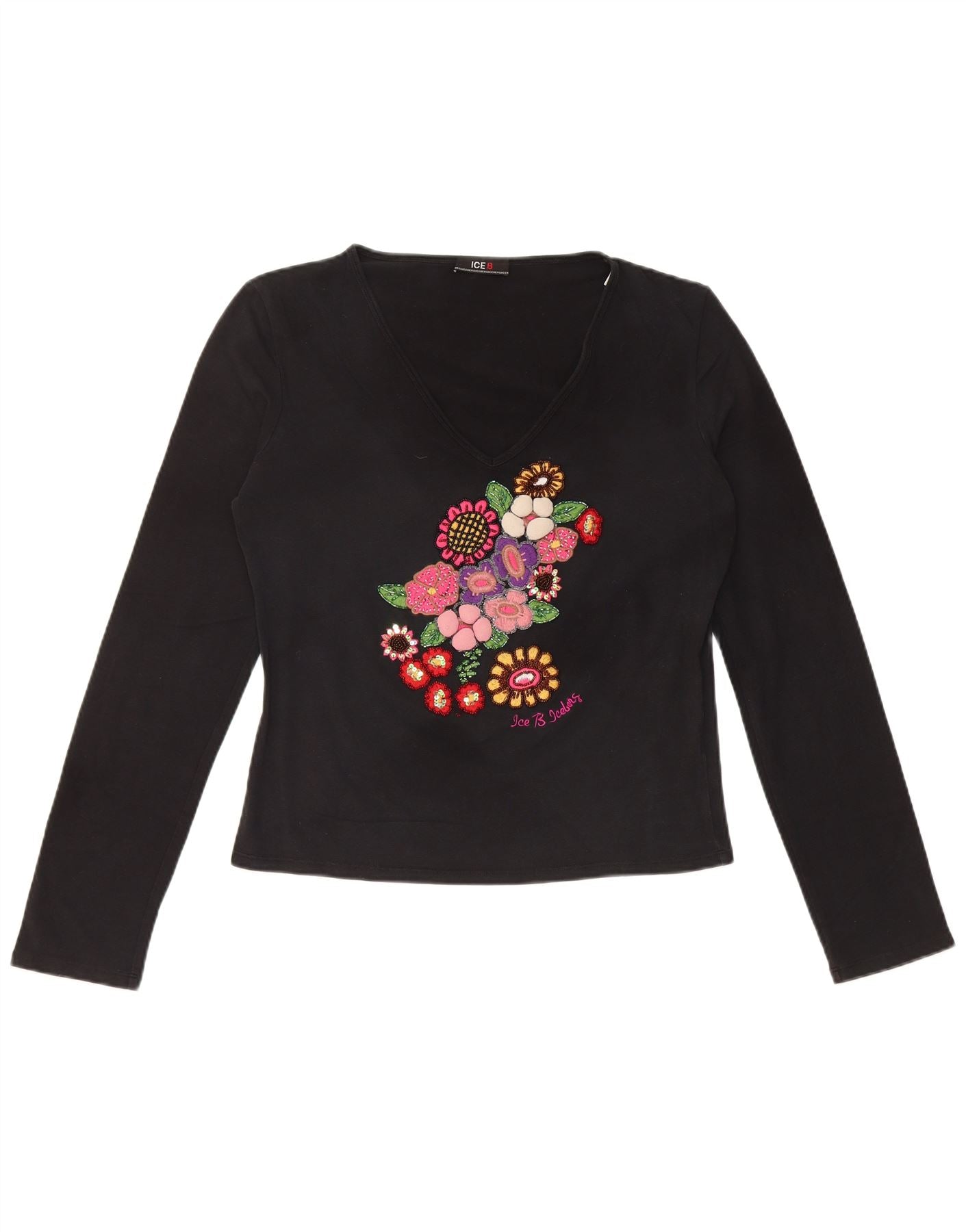 ICEBERG ženska majica s kratkim rukavima dugih rukava IT 46, veliki crni cvjetni