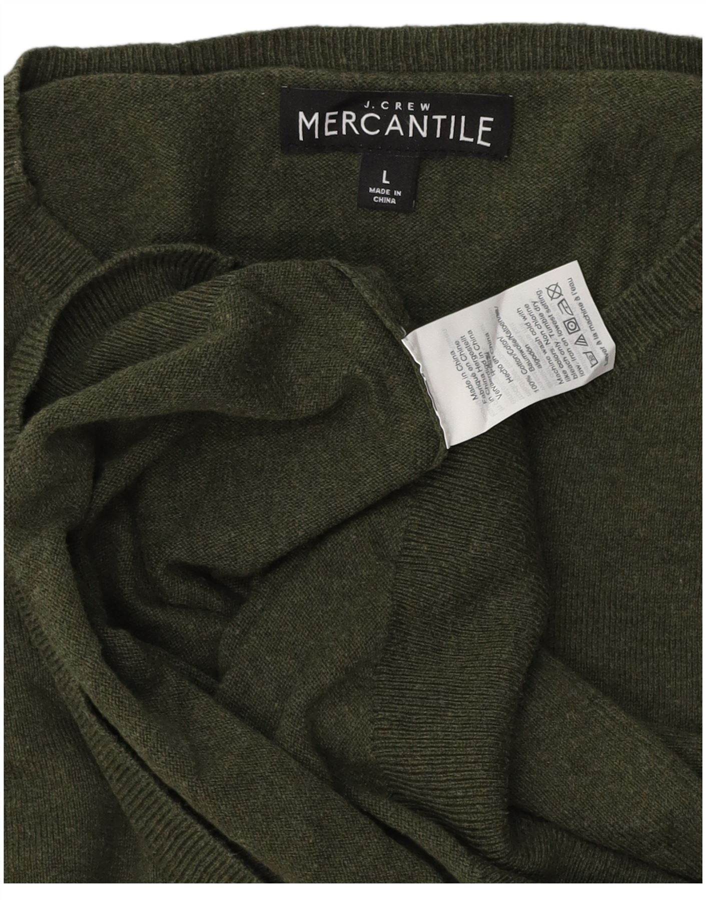 J. CREW Muški trgovački džemper s okruglim izrezom, veliki kaki pamuk
