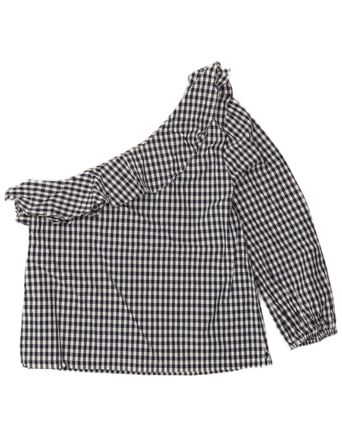 J. CREW Ženska majica na jedno rame US 8 Srednje tamnoplavi pamuk od ginghama