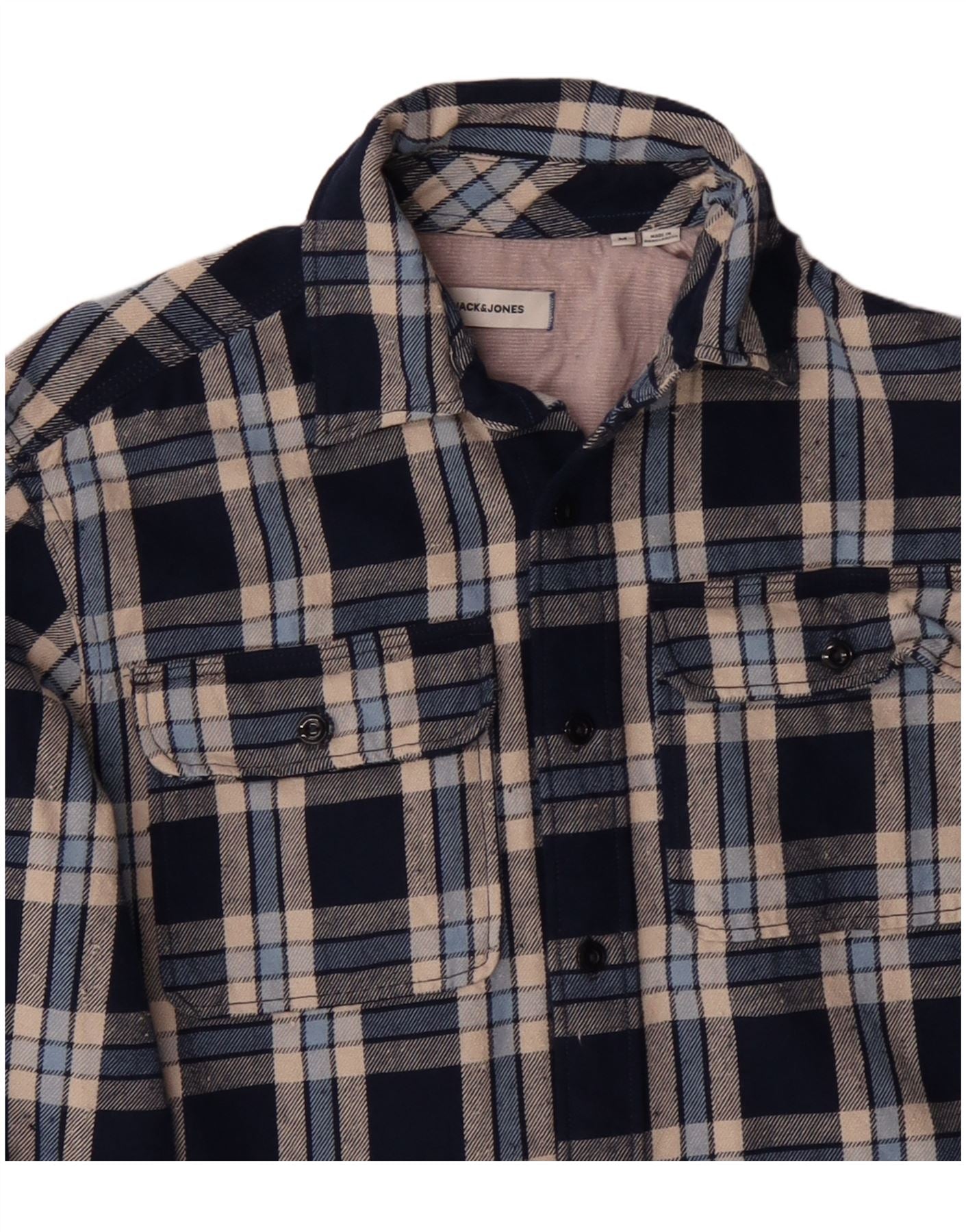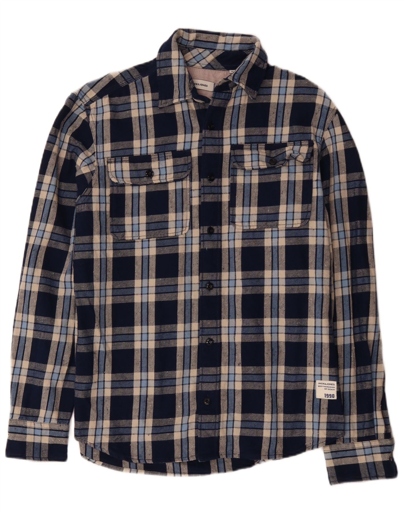 JACK & JONES Muška košulja od flanela Srednje tamnoplava karirana pamuk