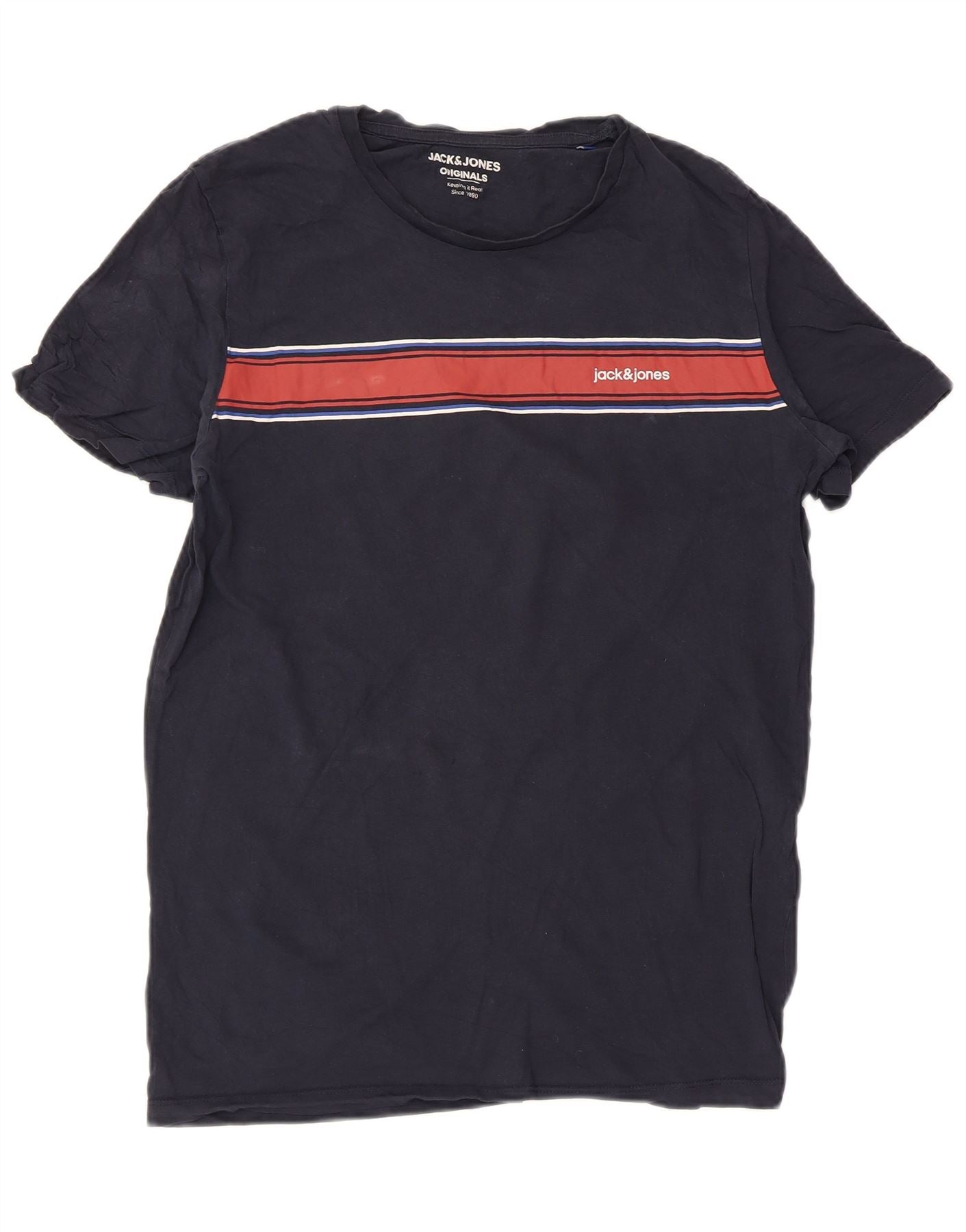 Jack & Jones muška majica kratkih rukava s grafičkim motivima, srednji tamnoplavi pamuk na pruge