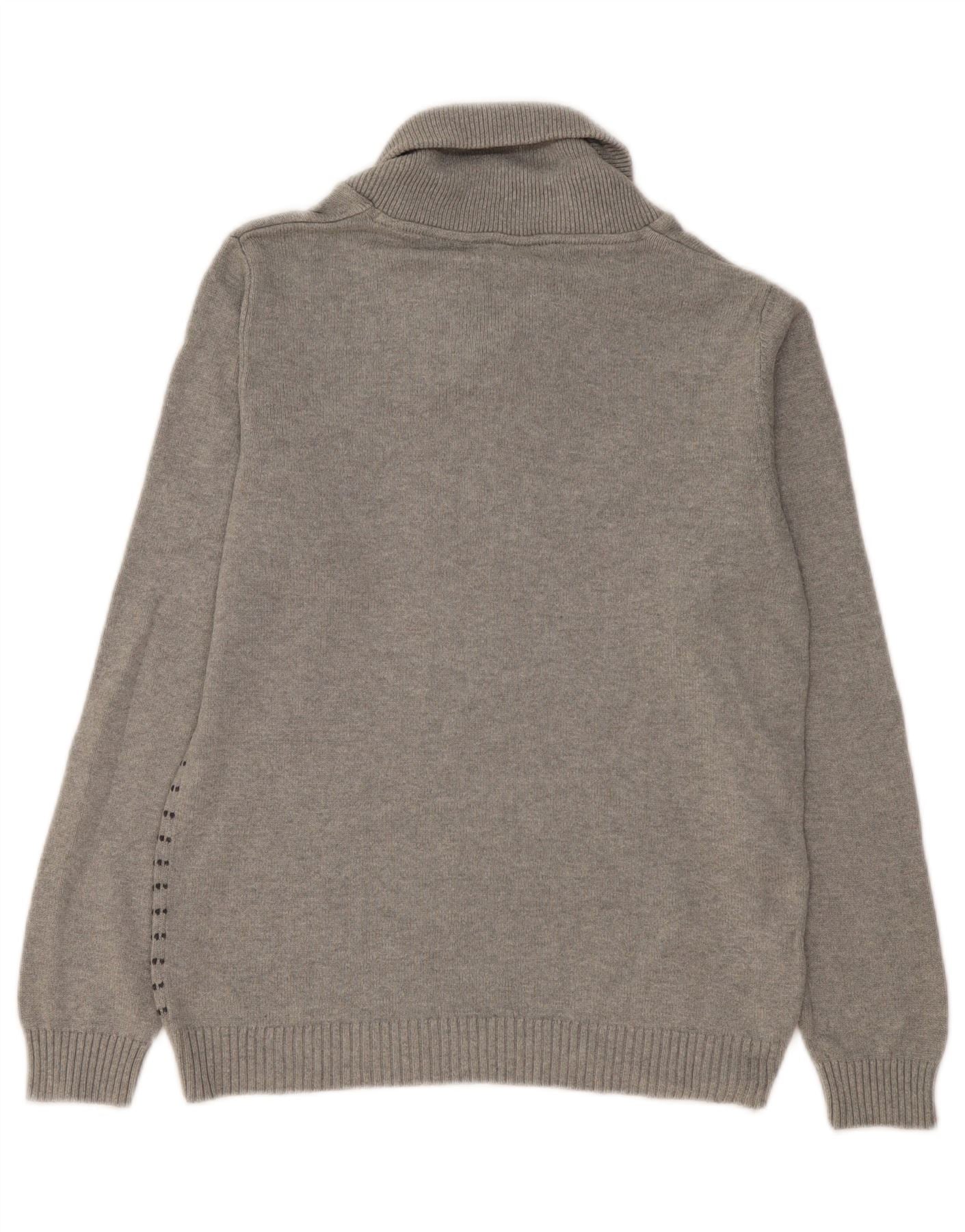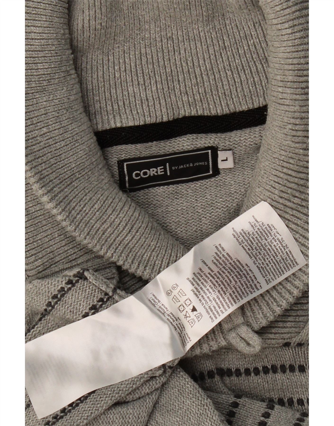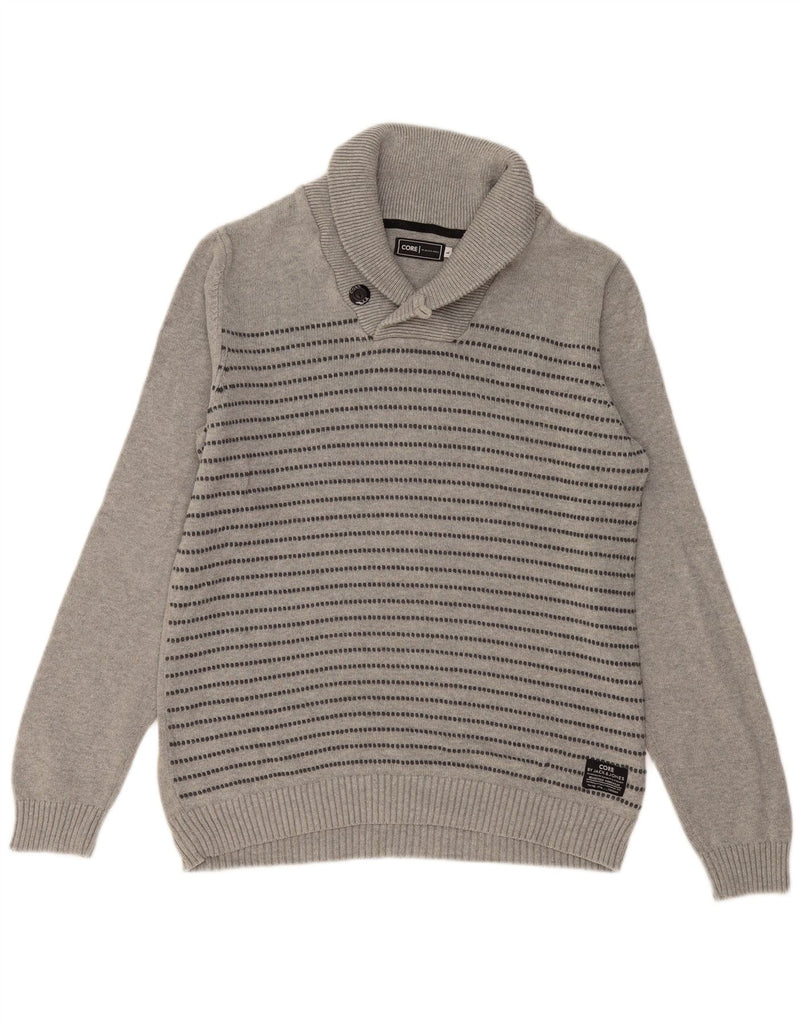 JACK & JONES Mens Shawl Neck Jumper Sweater Large Grey Striped Cotton
