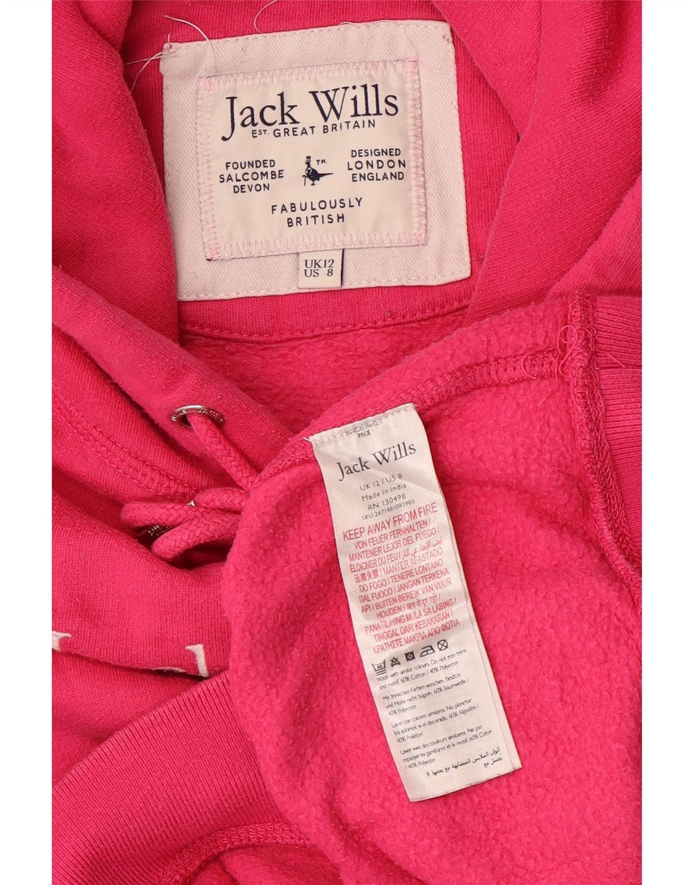 JACK WILLS Ženska prevelika skraćena majica s kapuljačom s kapuljačom UK 12 srednje ružičasta