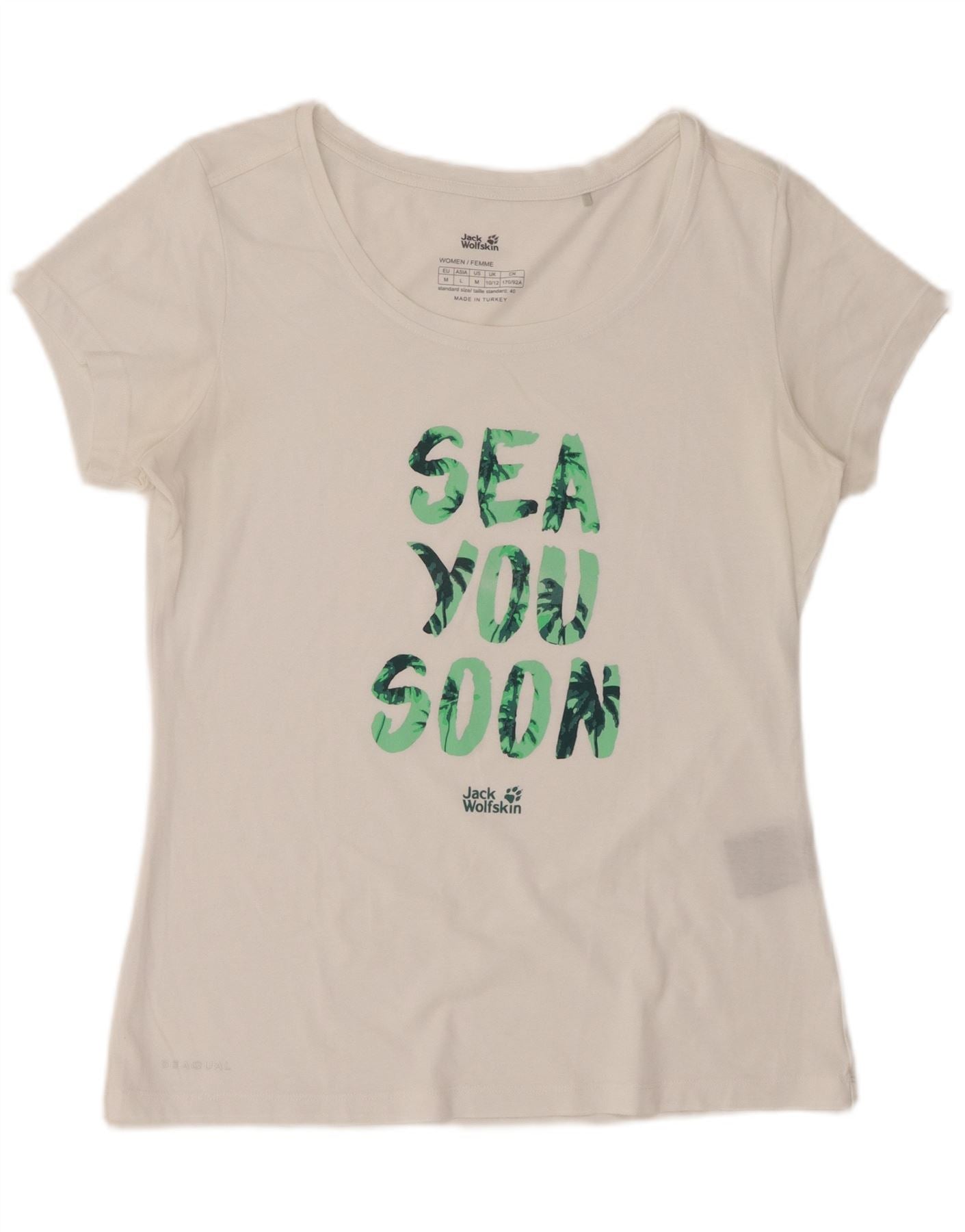 JACK WOLFSKIN Ženska grafička majica kratkih rukava UK 10/12 Srednje bijeli pamuk