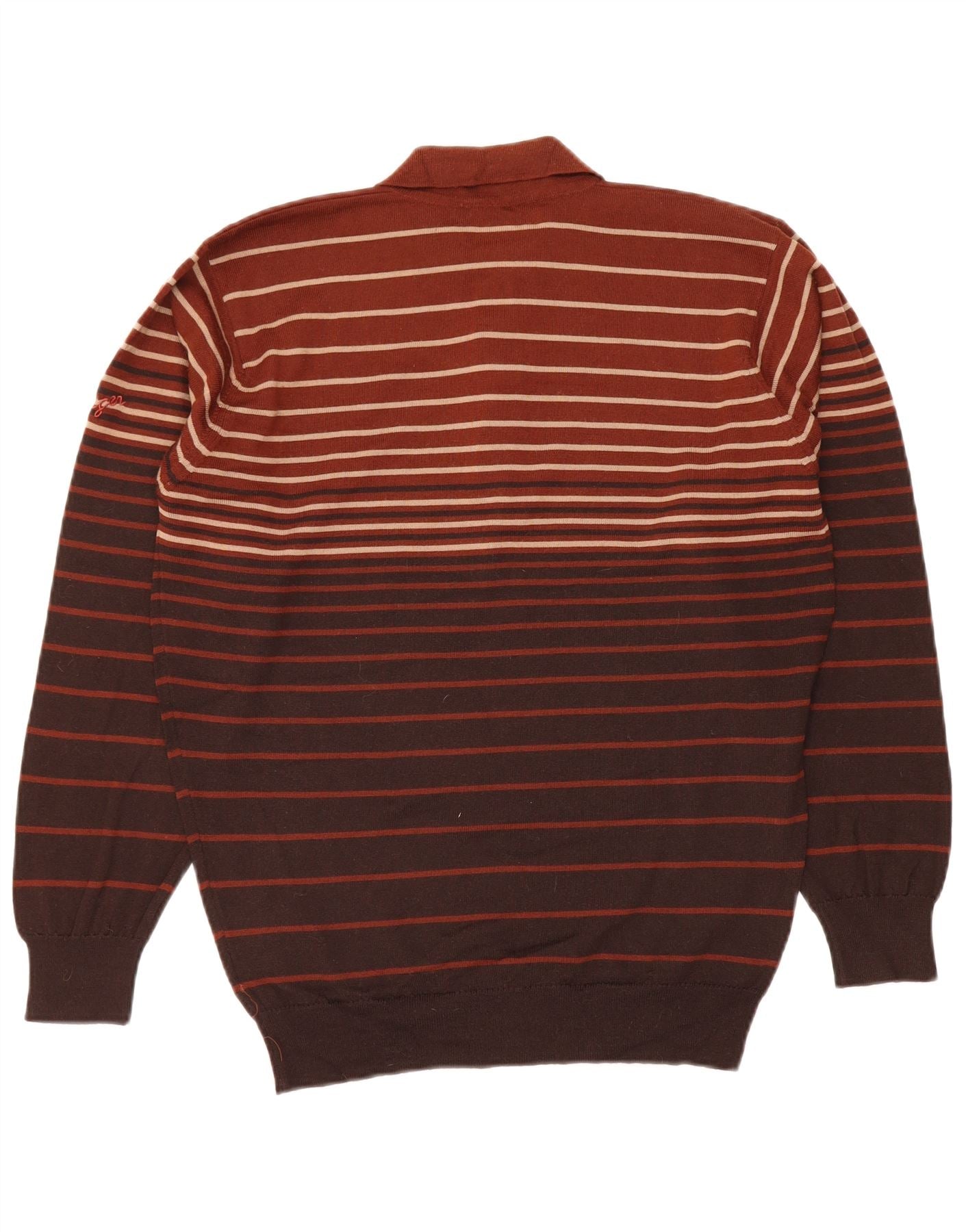 - AI opis: Ova Jaeger muška polo majica izrađena je od 100 posto vunenog pletiva, pružajući mekan, luksuzan dojam. Ima bogatu bordo bazu s kontrastnim horizontalnim prugama. Izrez s ovratnikom i kopčanje gumbima pružaju klasičan, profinjen izgled. Dugi rukavi i pravilan kroj osiguravaju udobno nošenje. Ovaj bezvremenski komad spaja toplinu sa sofisticiranim stilom.