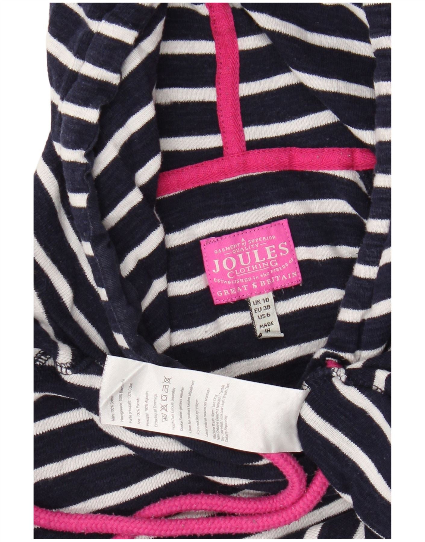 Joules ženska majica s kapuljačom dugih rukava UK 10 Mala pamuk na tamnoplave pruge