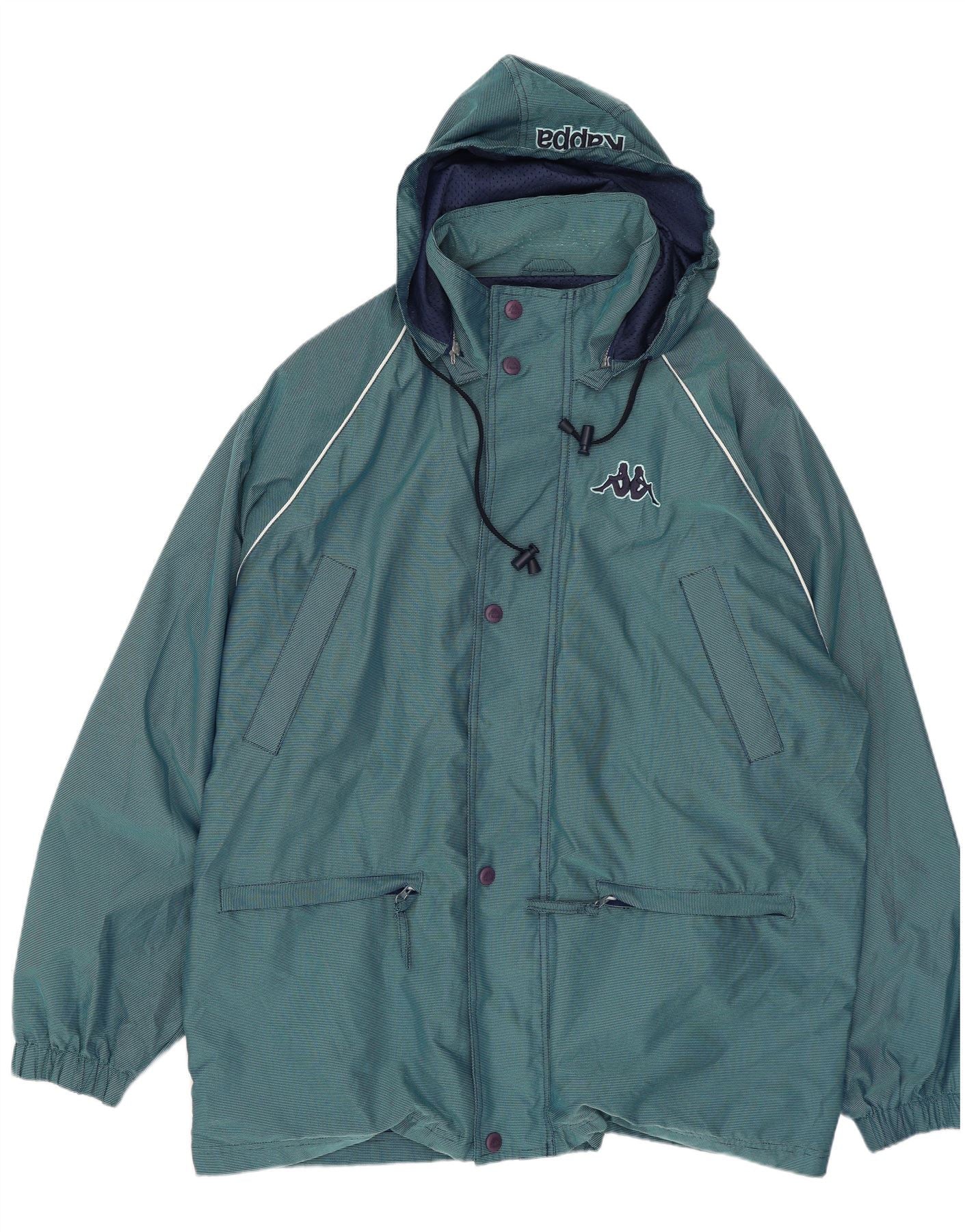 KAPPA muška kišna jakna s kapuljačom s grafičkim motivima UK 42 XL plavi najlon