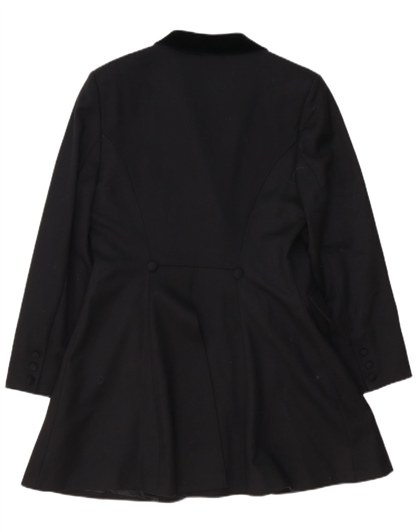 LAURA ASHLEY Ženska duga jakna s 4 gumba UK 14 Velika crna vunena