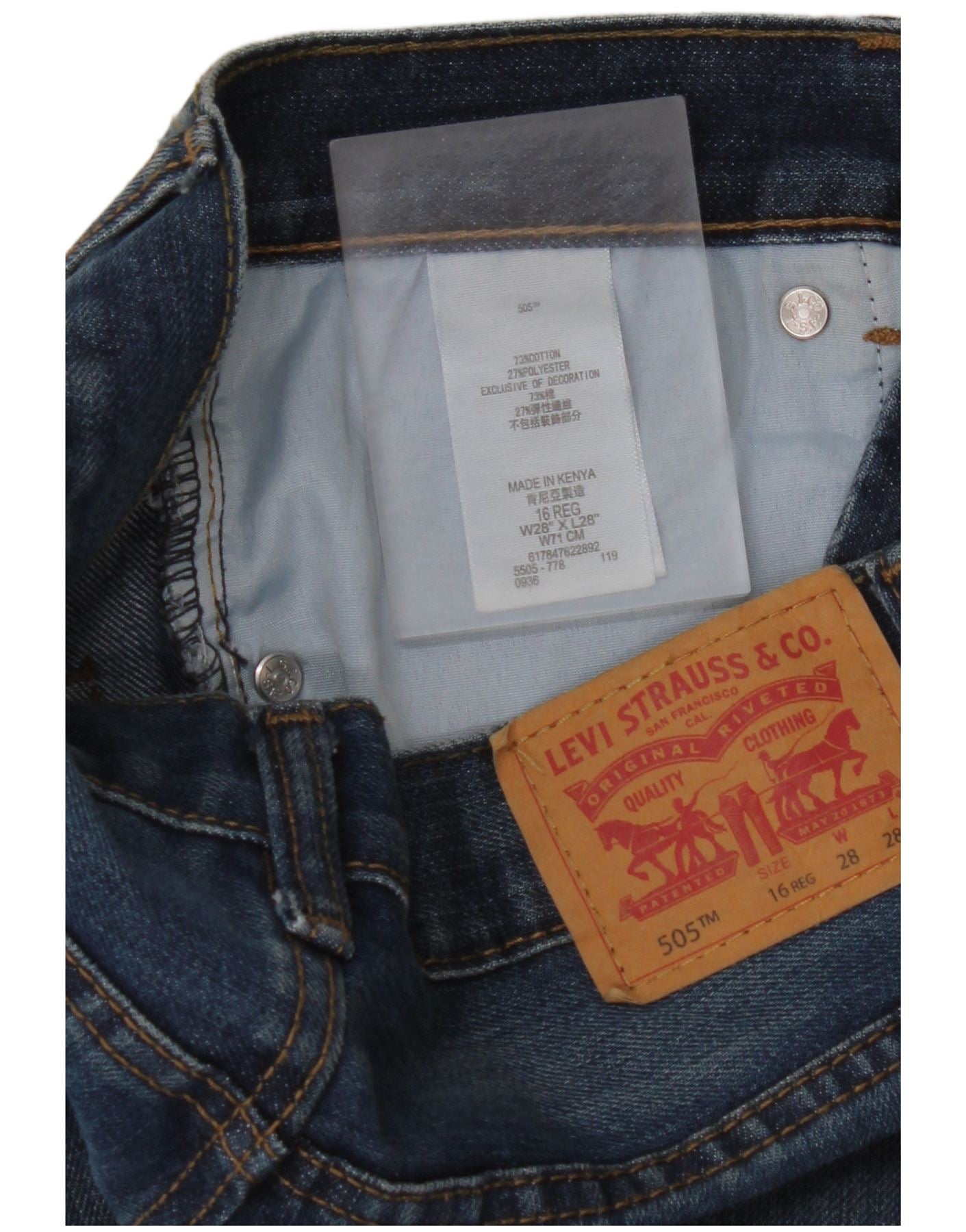 LEVI'S Boys 505 Regular Straight Jeans 15-16 Years W28 L28 Plavi pamuk