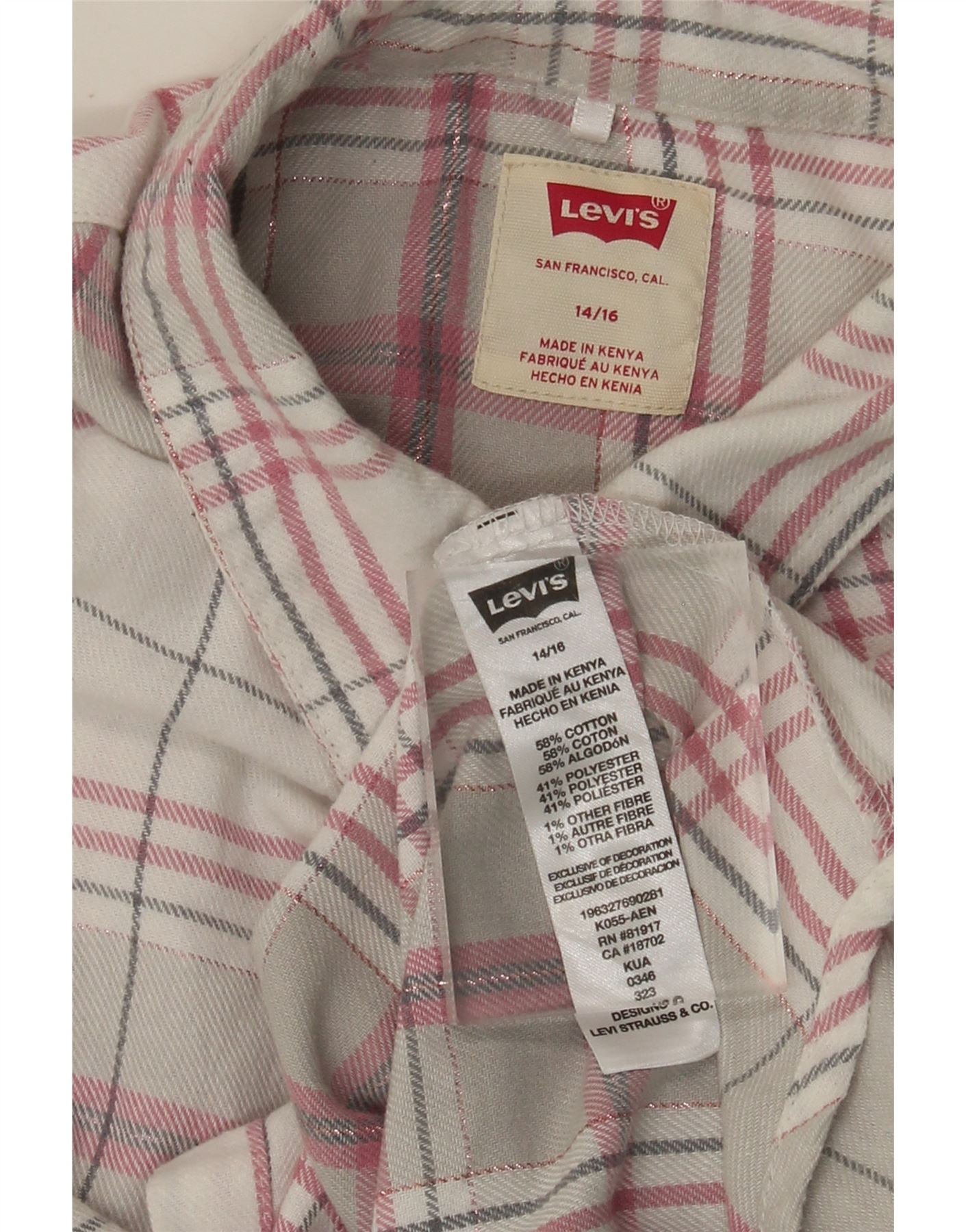 LEVI'S Flanel košulja za djevojčice 14-15 godina, pamuk u sivom karu