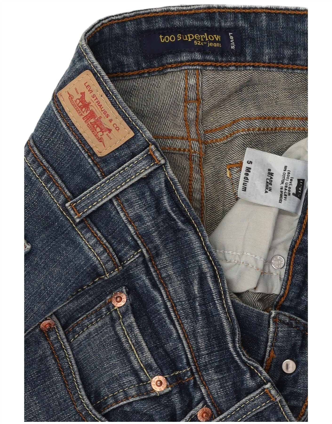 LEVI'S Ženske 524 Too Superlow uske traperice US 5 Small W29 L32 Plavi pamuk