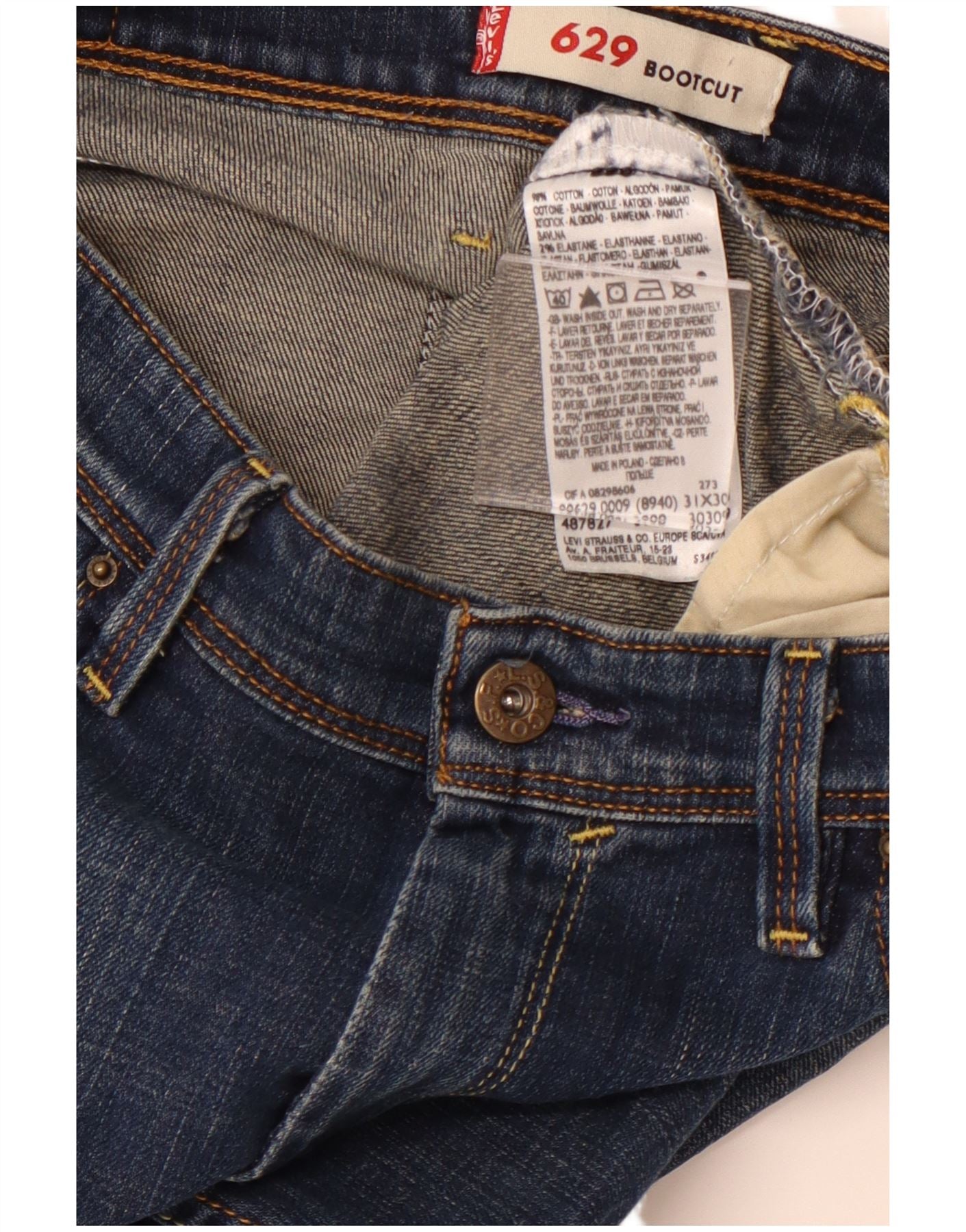 LEVI'S Ženske 629 Bootcut traperice W31 L30 tamnoplavi pamuk