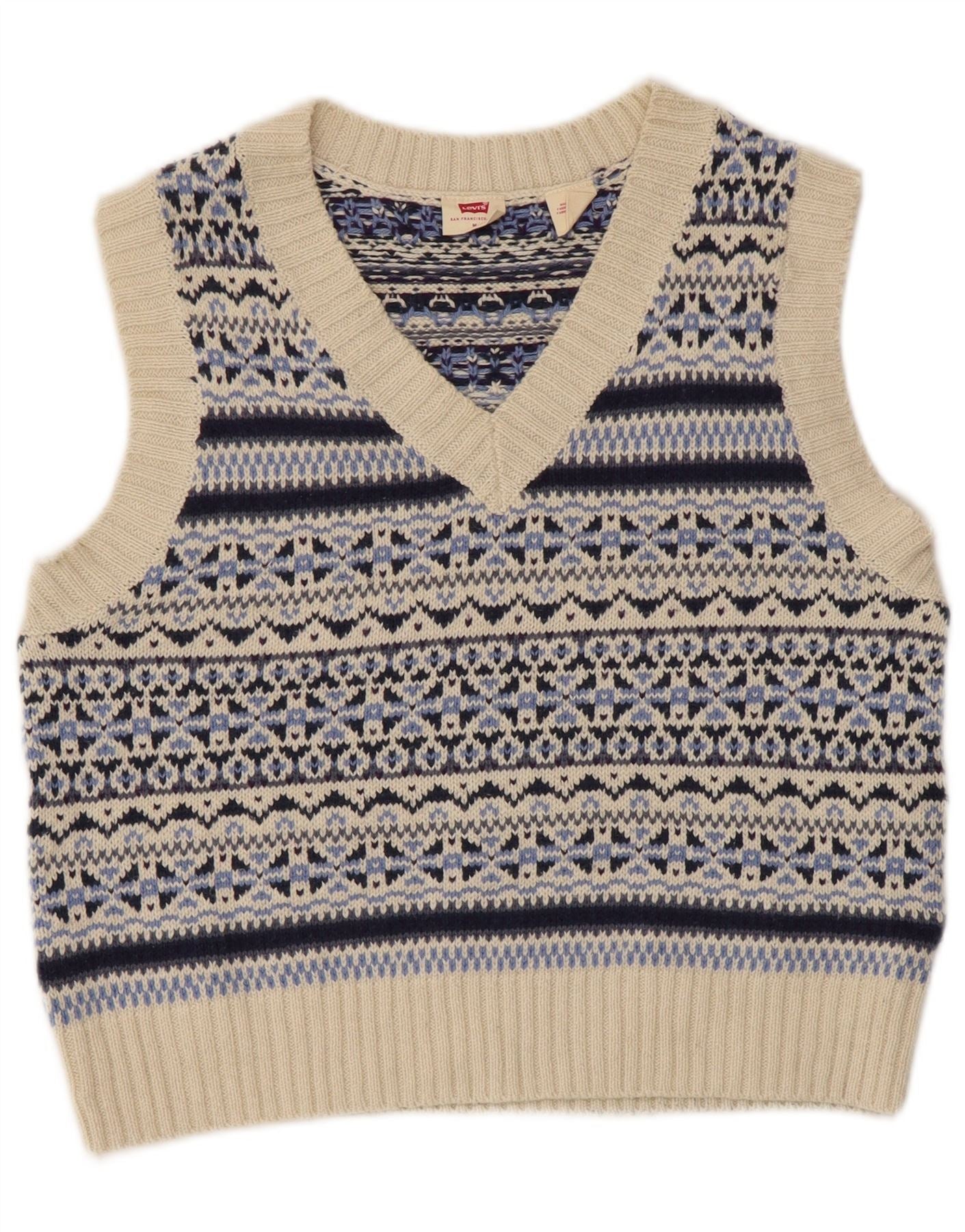 Levi's ženski kratki prsluk bez rukava UK 12 Medium Blue Fair Isle Cotton