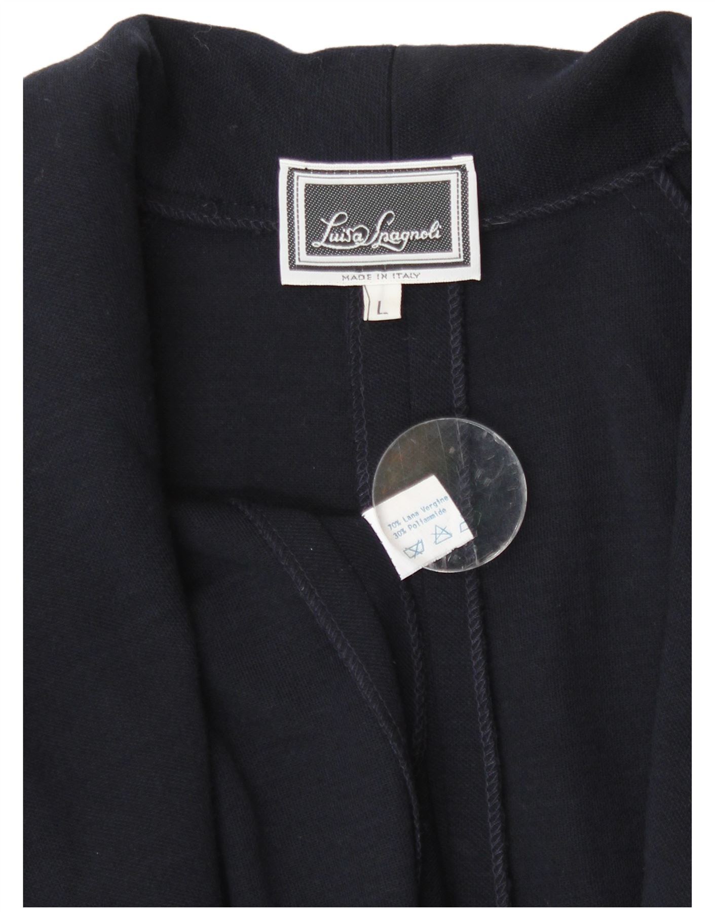 Luisa Spagnoli ženski otvoreni kaput UK 14 velika tamnoplava djevičanska vuna