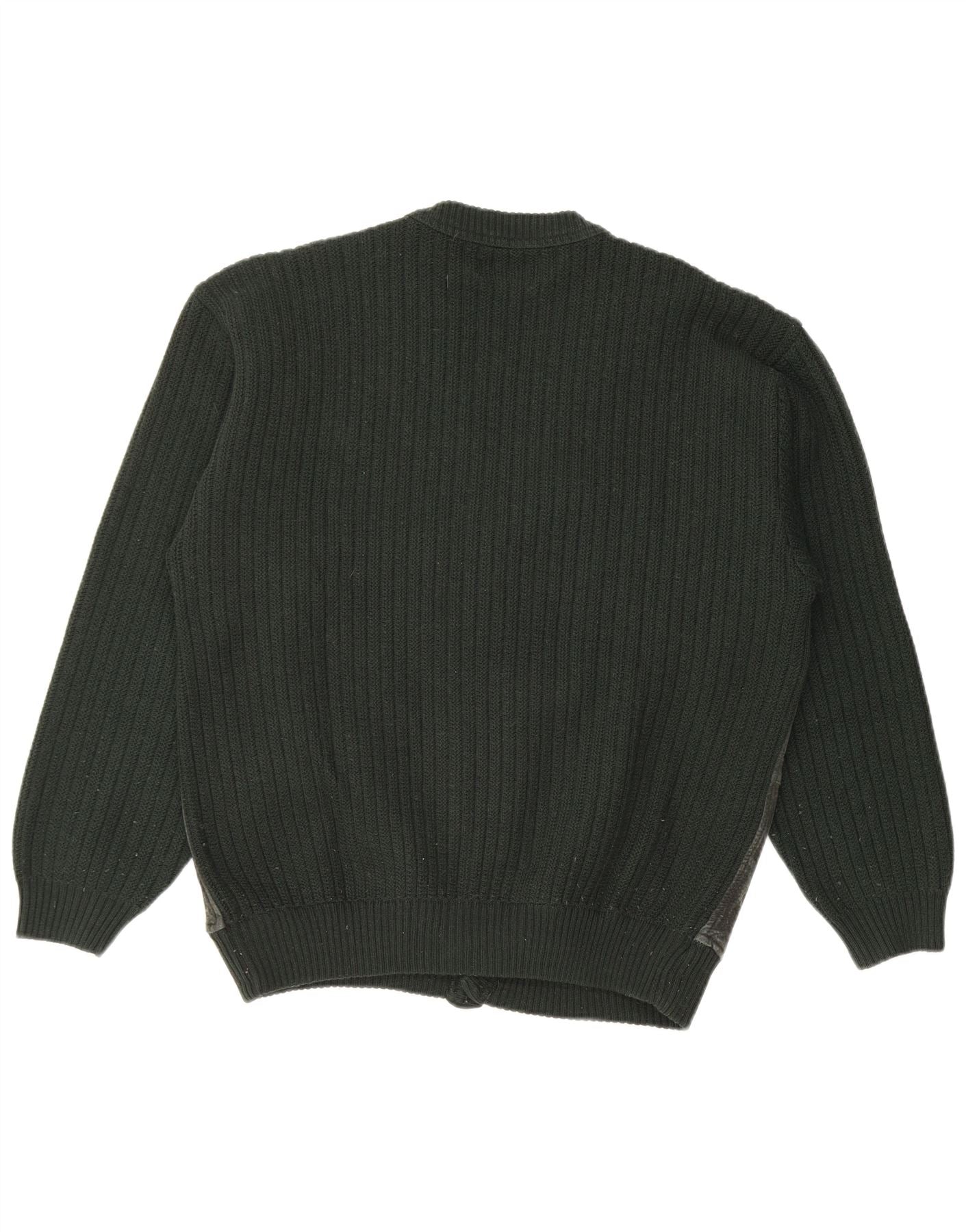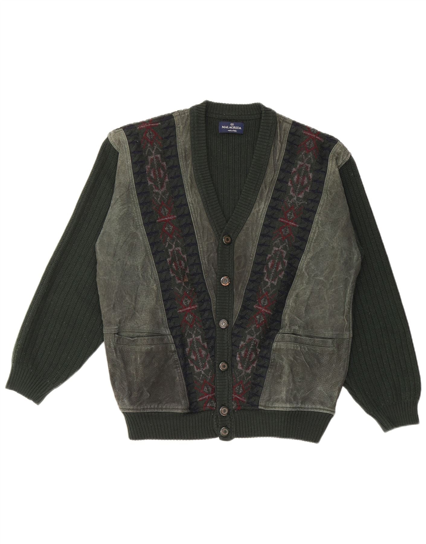 MALAGRIDA Muški kardigan džemper srednje zelene geometrijske djevičanske vune