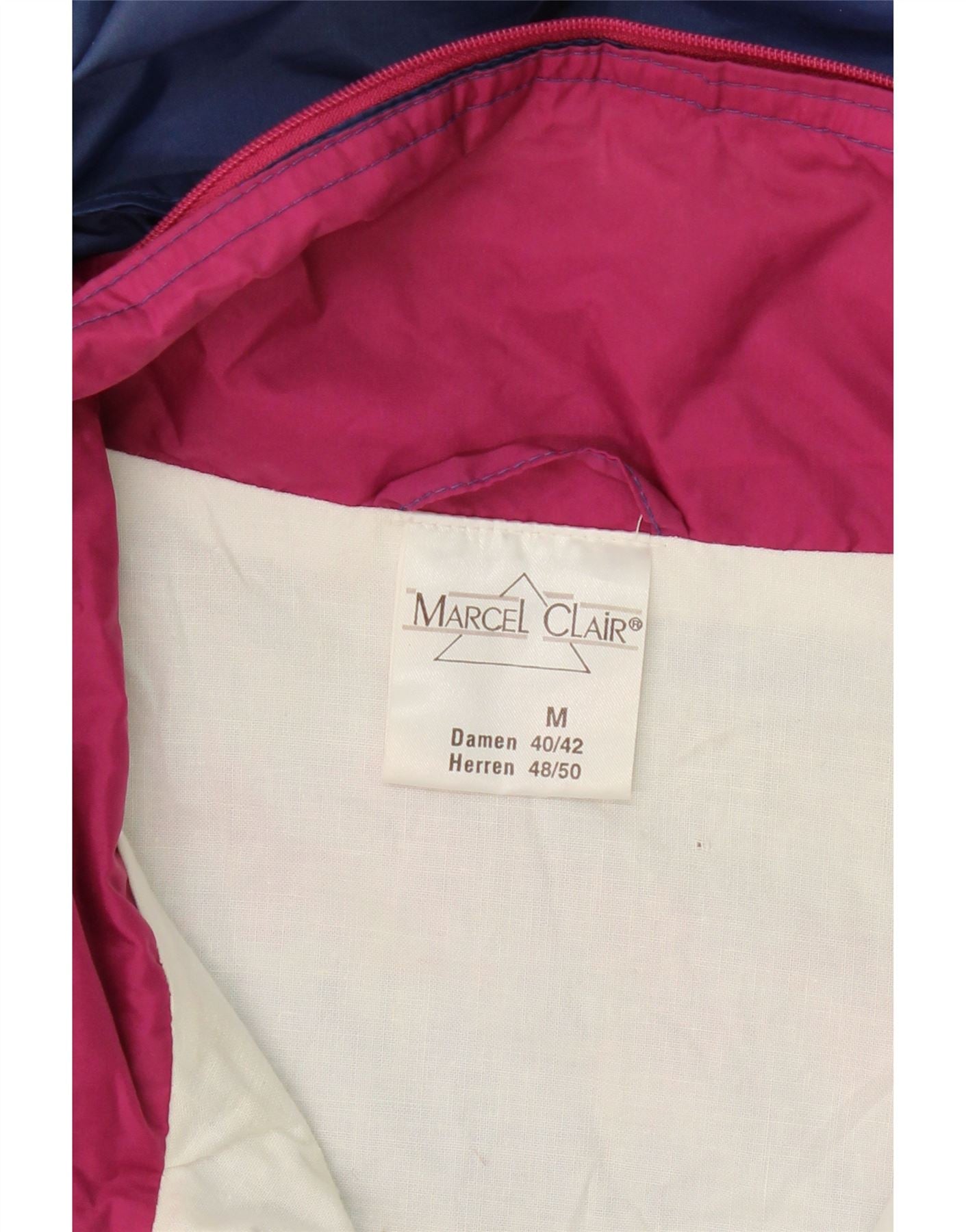 MARCEL CLAIR Mens Hooded Rain Jacket UK 38 Medium Navy Blue Colourblock