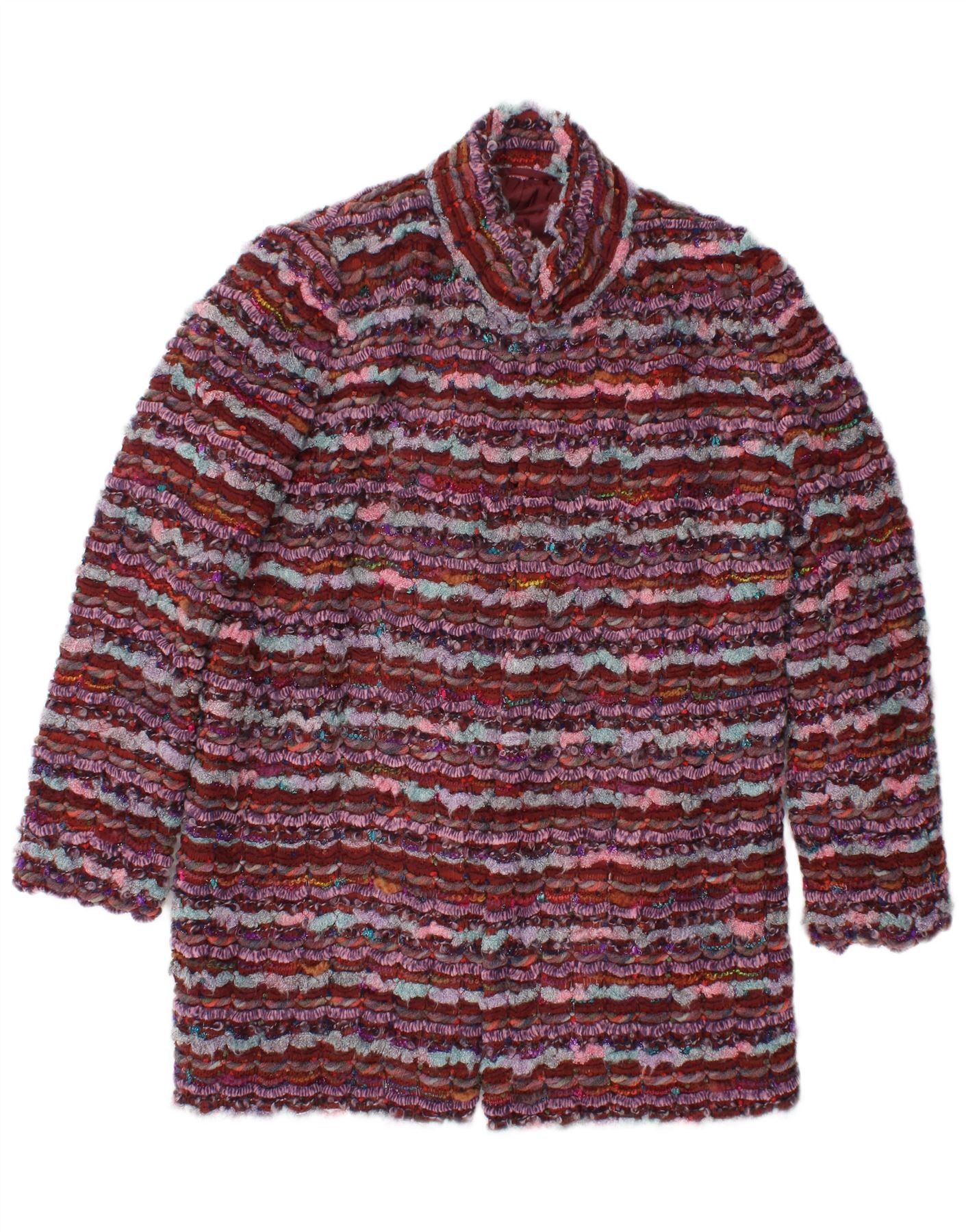 MARIELLA ROSATI Womens Open Overcoat UK 14 Large Burgundy Striped