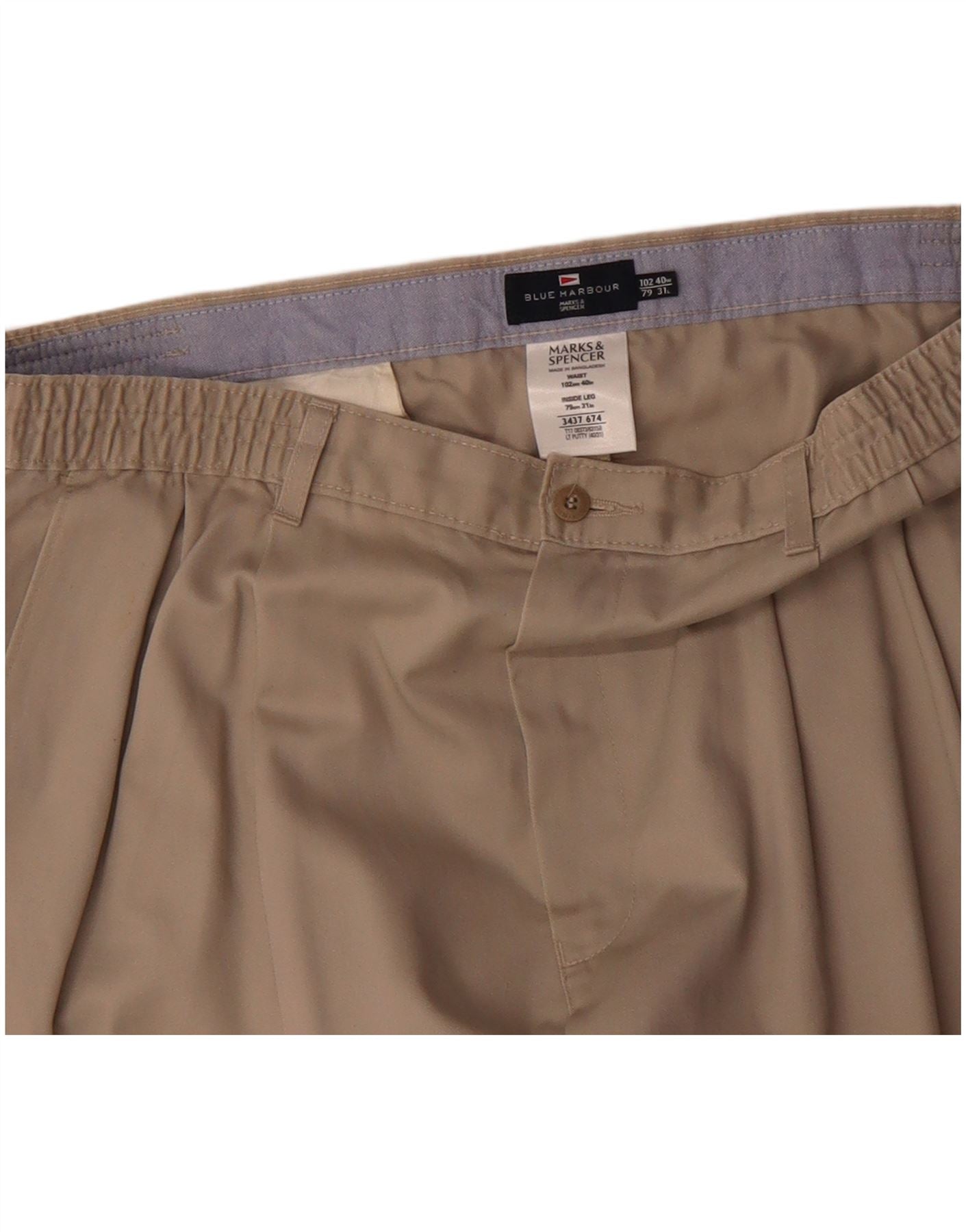 MARKS & SPENCER Mens Blue Harbour Pegged Chino Trousers W40 L31 Beige