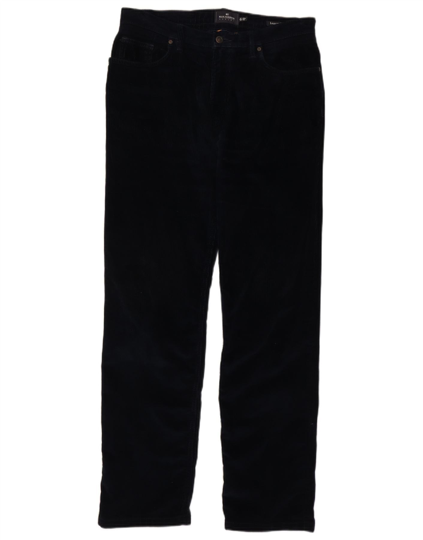 MARKS & SPENCER Muške ravne hlače od samta W32 L31 tamnoplavi pamuk