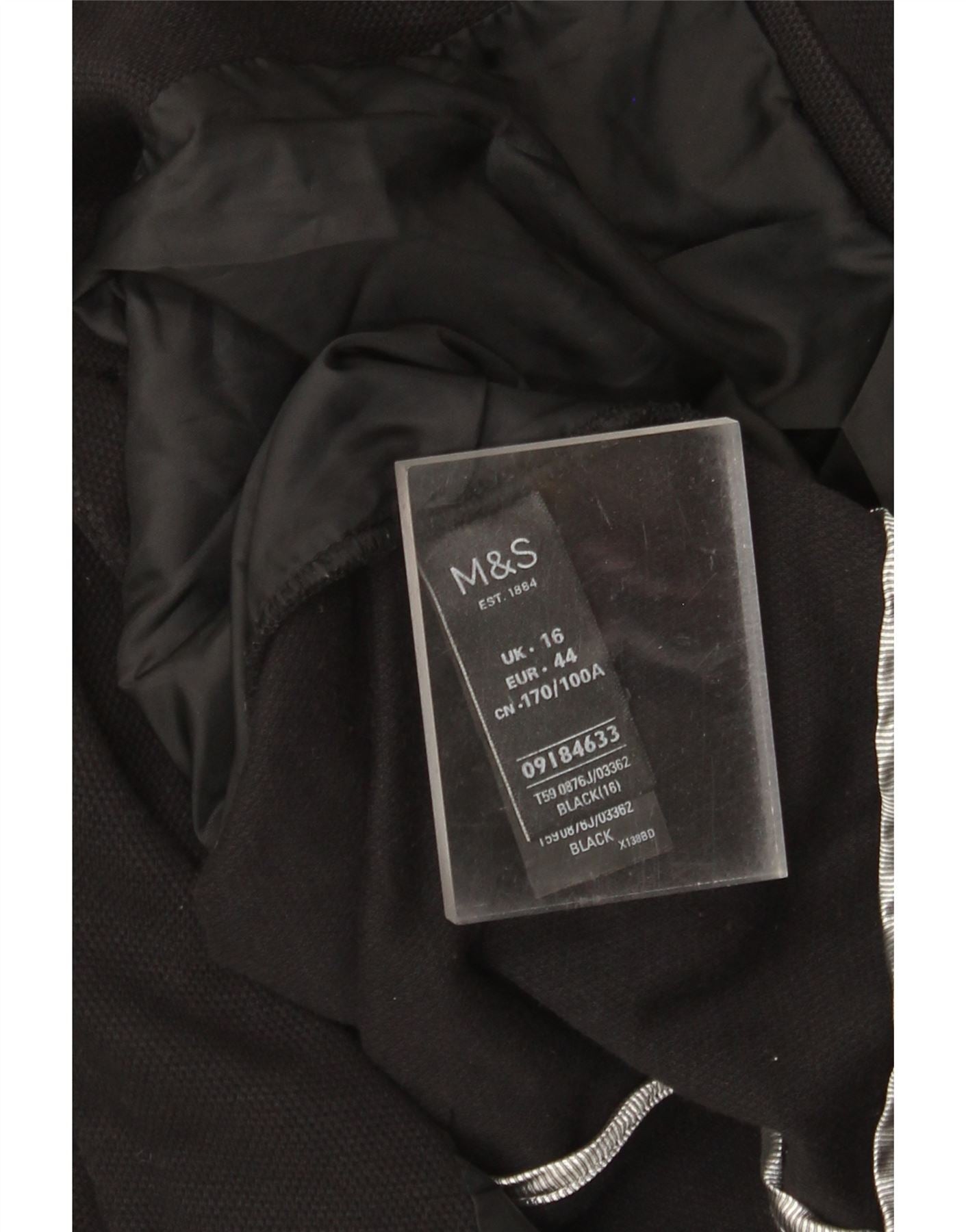 MARKS & SPENCER Ženska jakna sako s jednim gumbom UK 16 Veliki crni pamuk