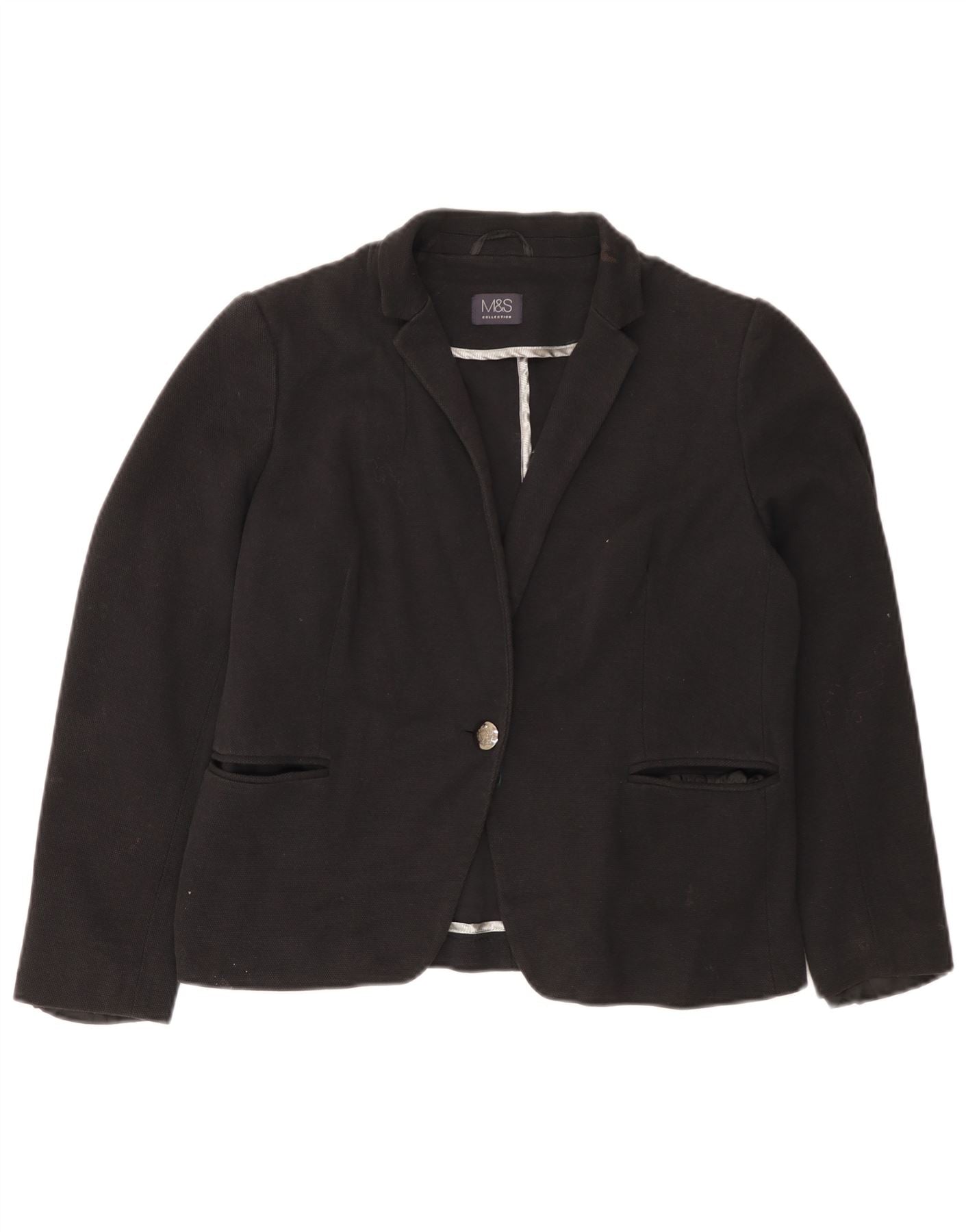 Home > Ženski > Depop odjeća > MARKS & SPENCER Ženska jakna sako s jednim gumbom UK 16 Veliki crni pamuk