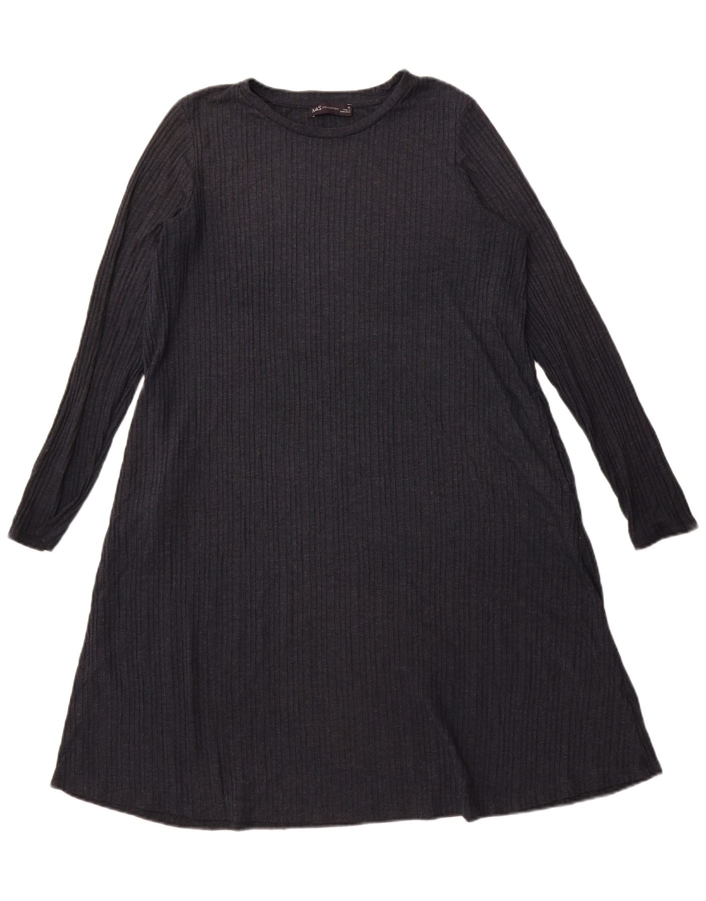 - AI opis: Ova Marks & Spencer ženska haljina A kroja izrađena je od udobnog sivog rebrastog pletiva. Mješavina poliestera i viskoze pruža mekan osjećaj s lakoćom rastezanja. Ima klasični okrugli izrez i duge rukave. Opušteni kroj nježno se širi u A-siluetu, osiguravajući udobnost i laskavu draperiju. Ovaj stil pulovera je jednostavan, ali elegantan.