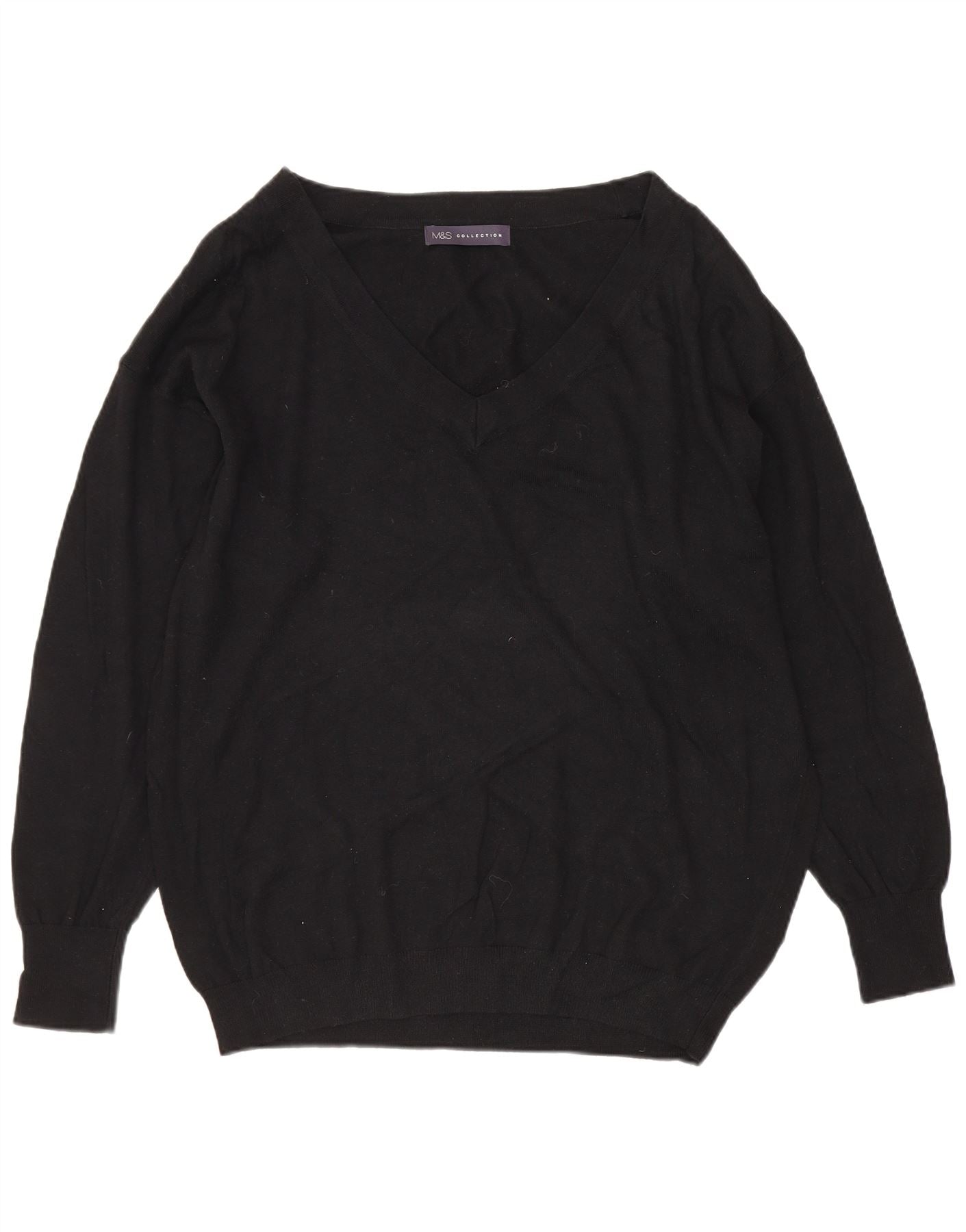 MARKS & SPENCER Ženski džemper s V-izrezom UK 14 Veliki crni pamuk