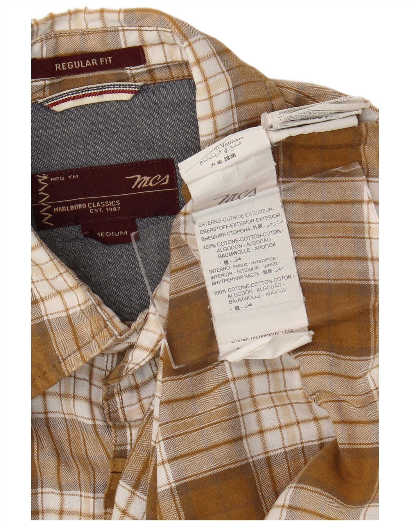 MARLBORO CLASSICS Muška flanelska košulja standardnog kroja Srednje bež karirani pamuk
