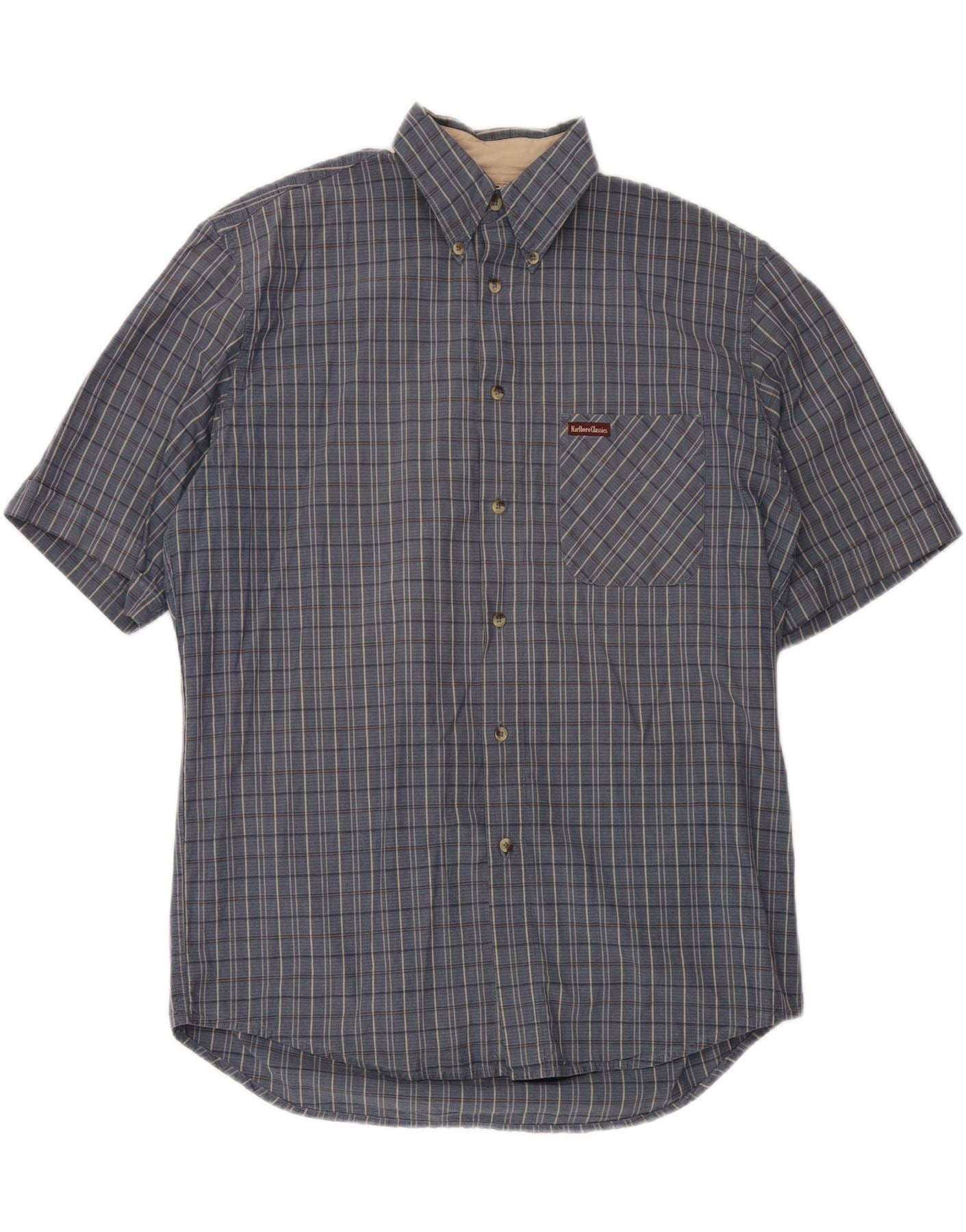 MARLBORO CLASSICS Muška košulja kratkih rukava Veliki plavi karirani pamuk
