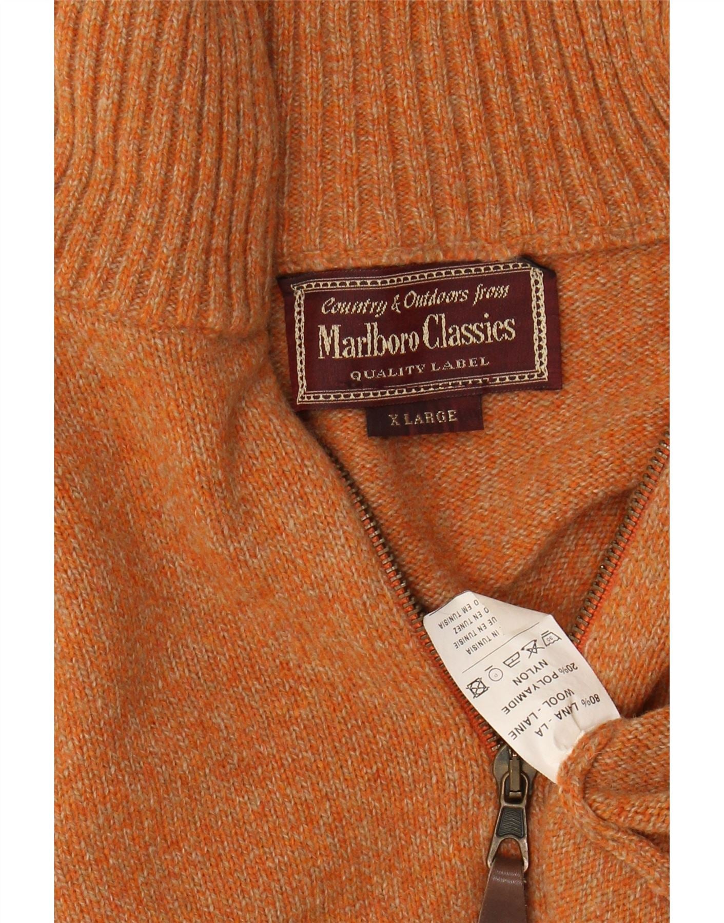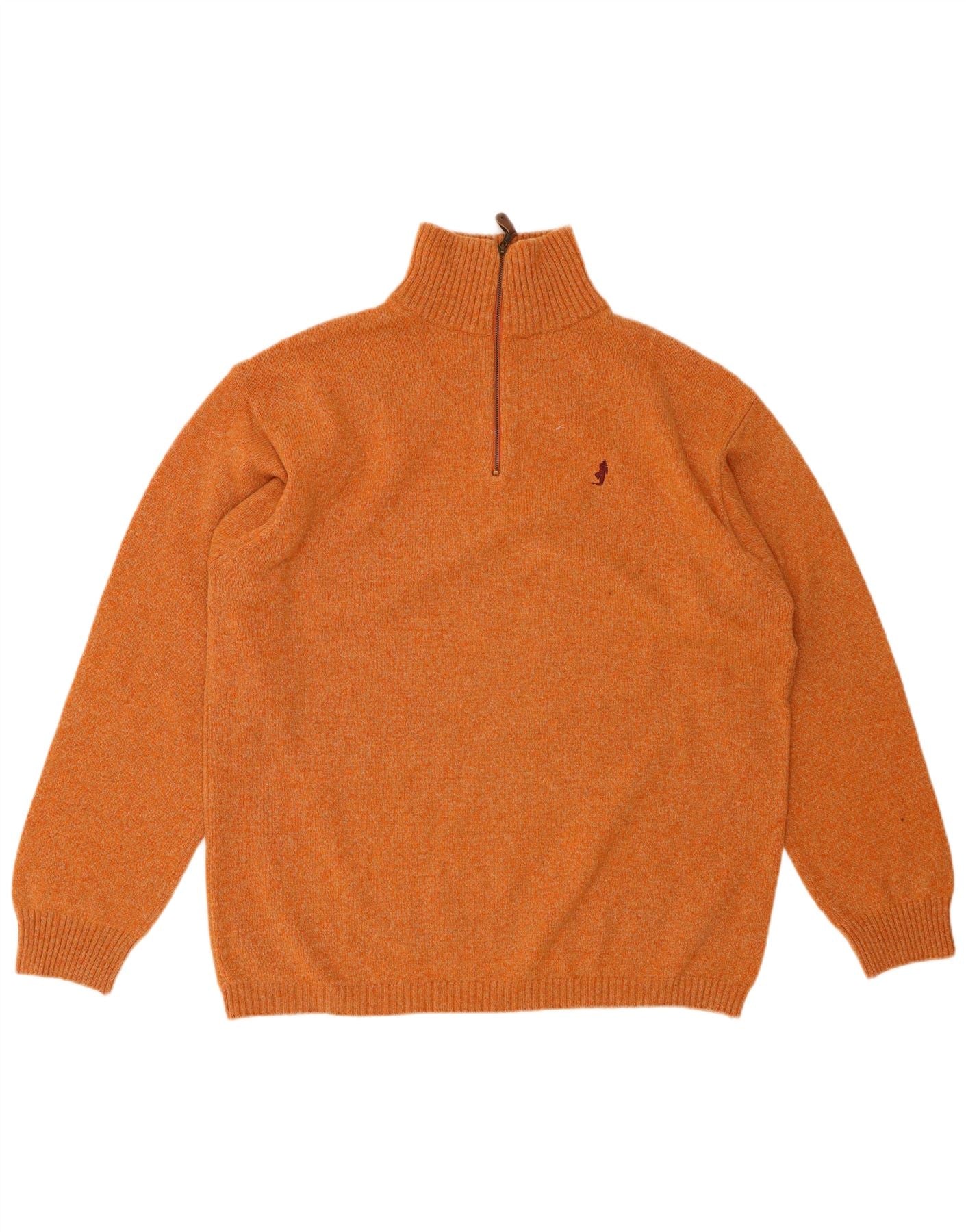 MARLBORO CLASSICS Mens Zip Neck Jumper Sweater XL Orange Flecked Wool