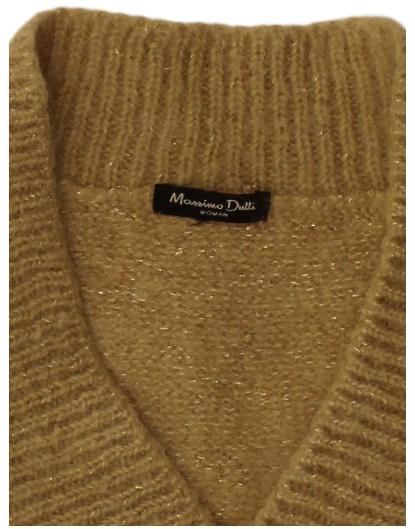 MASSIMO DUTTI Womens V-Neck Jumper Sweater UK 10 Small Gold