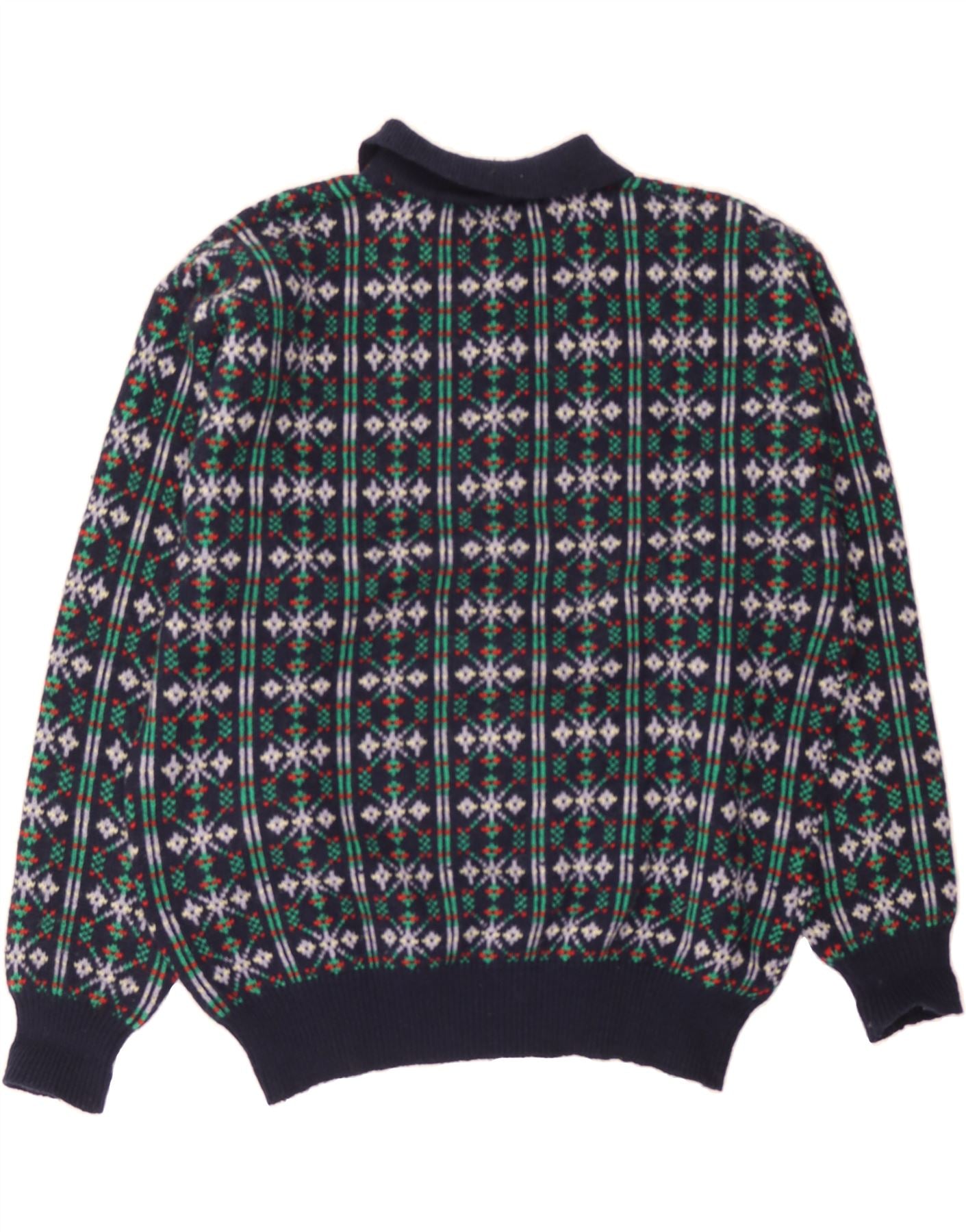 MC NEAL Mens Polo Neck Jumper Sweater XL Navy Blue Fair Isle Wool