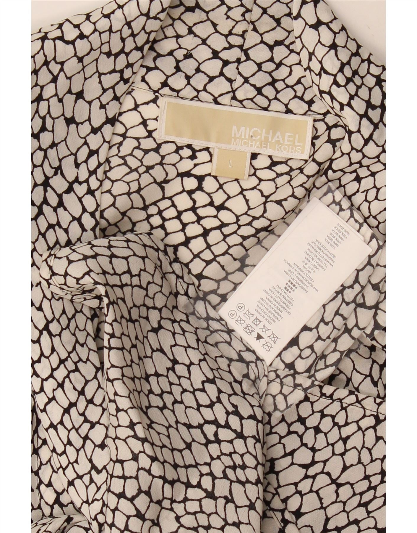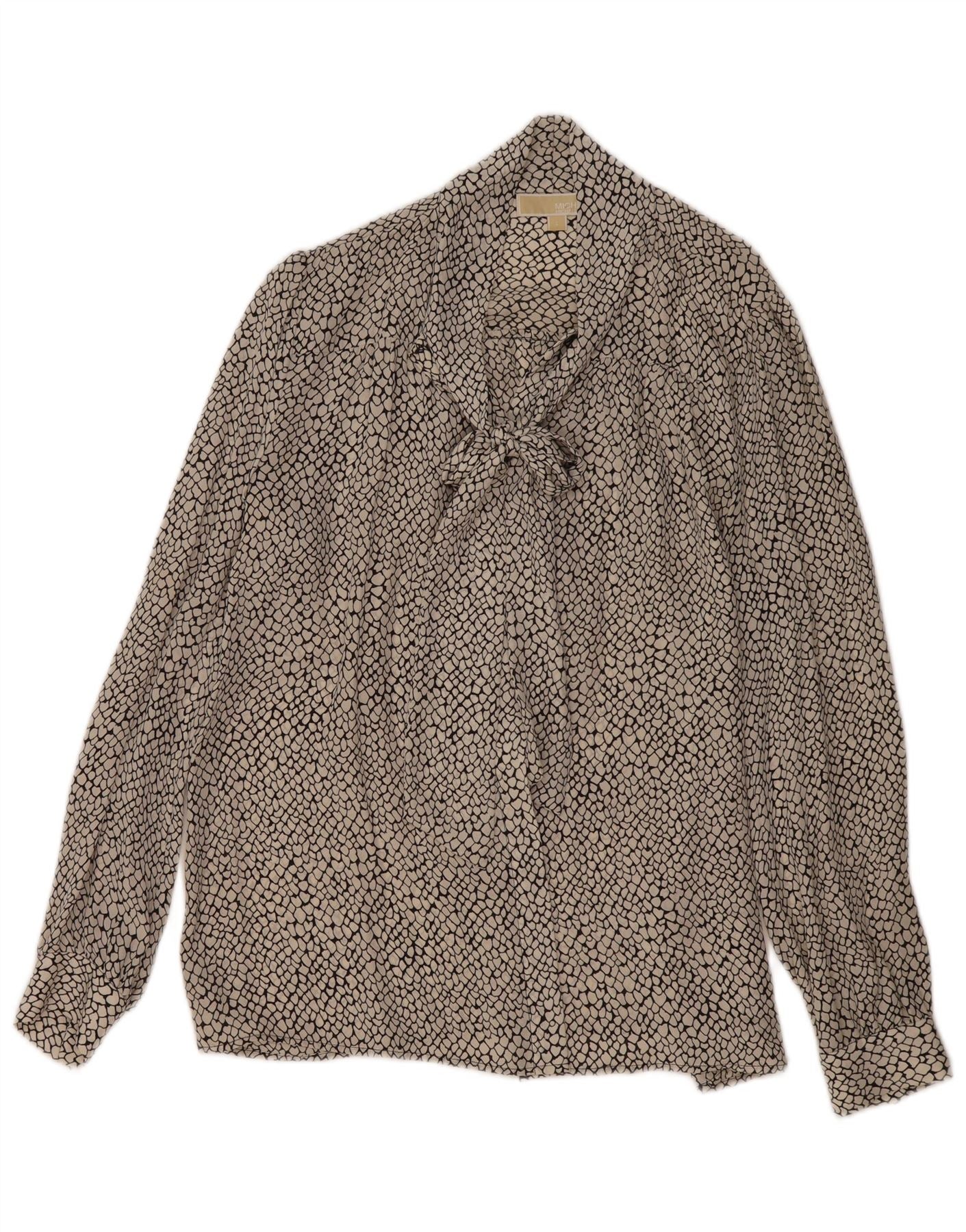 MICHAEL KORS Womens Front Tie Blouse Top UK 16 Large Black Animal Print